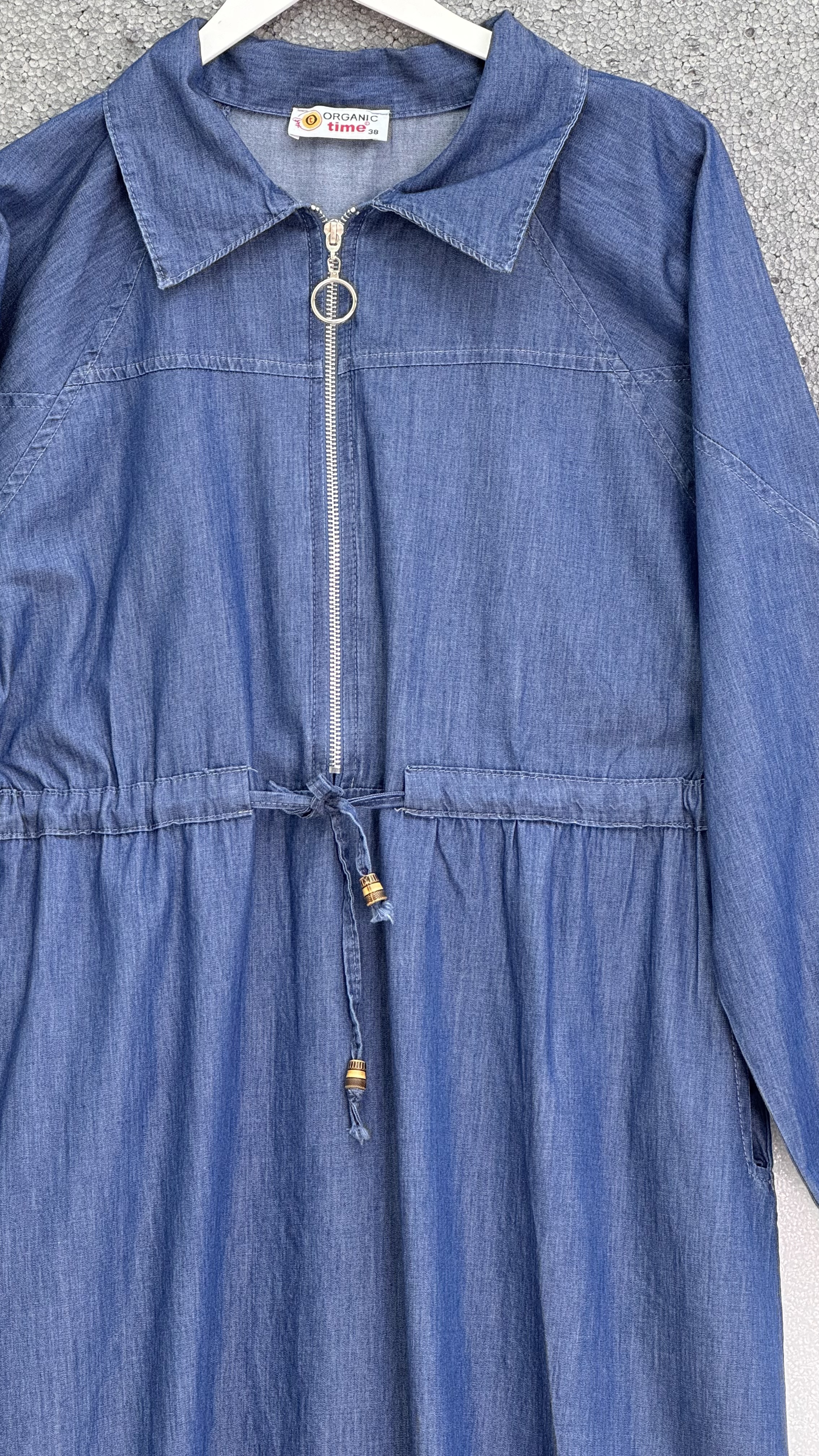 Half Placket Laced Elastic Sleeve Muslin Dress -Light coffee