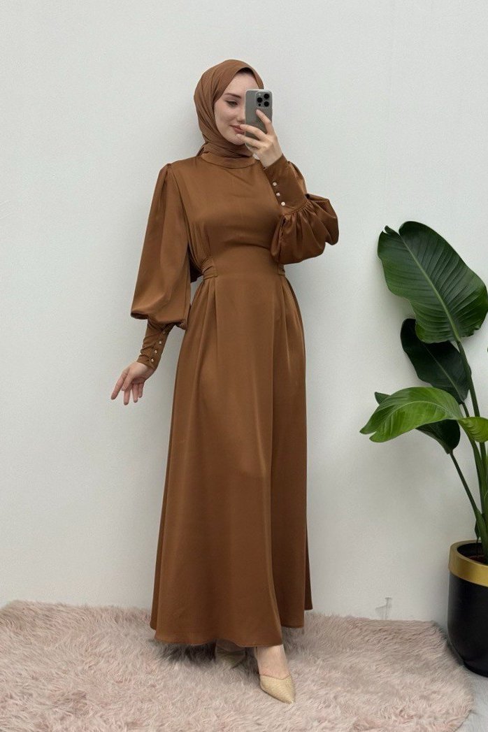 The Long Cuffed Belted Satin Balloon Sleeve Dress combines elegance and sophistication in a modern design. The long cuffed sleeves add a delicate detail to the dress, while the belted waist gently shapes the body's curves. The satin fabric, with its lustrous finish and soft texture, adds a touch of sophistication. The balloon sleeves offer a feminine and dynamic look. This dress is a perfect choice for both special occasions and daily chic.