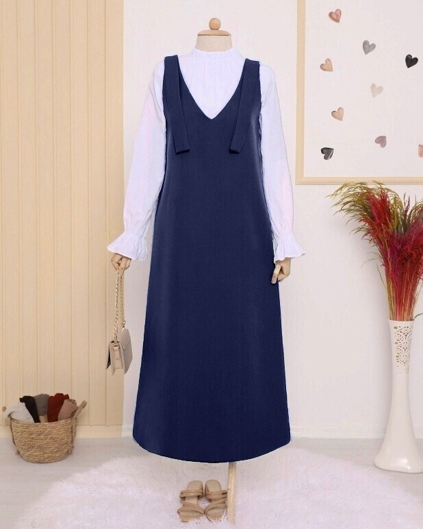 Long Gilet With Tied Shoulders -Navy blue