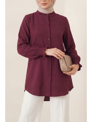 Sleeve Cuff Draped Oval Cut Shirt -Maroon