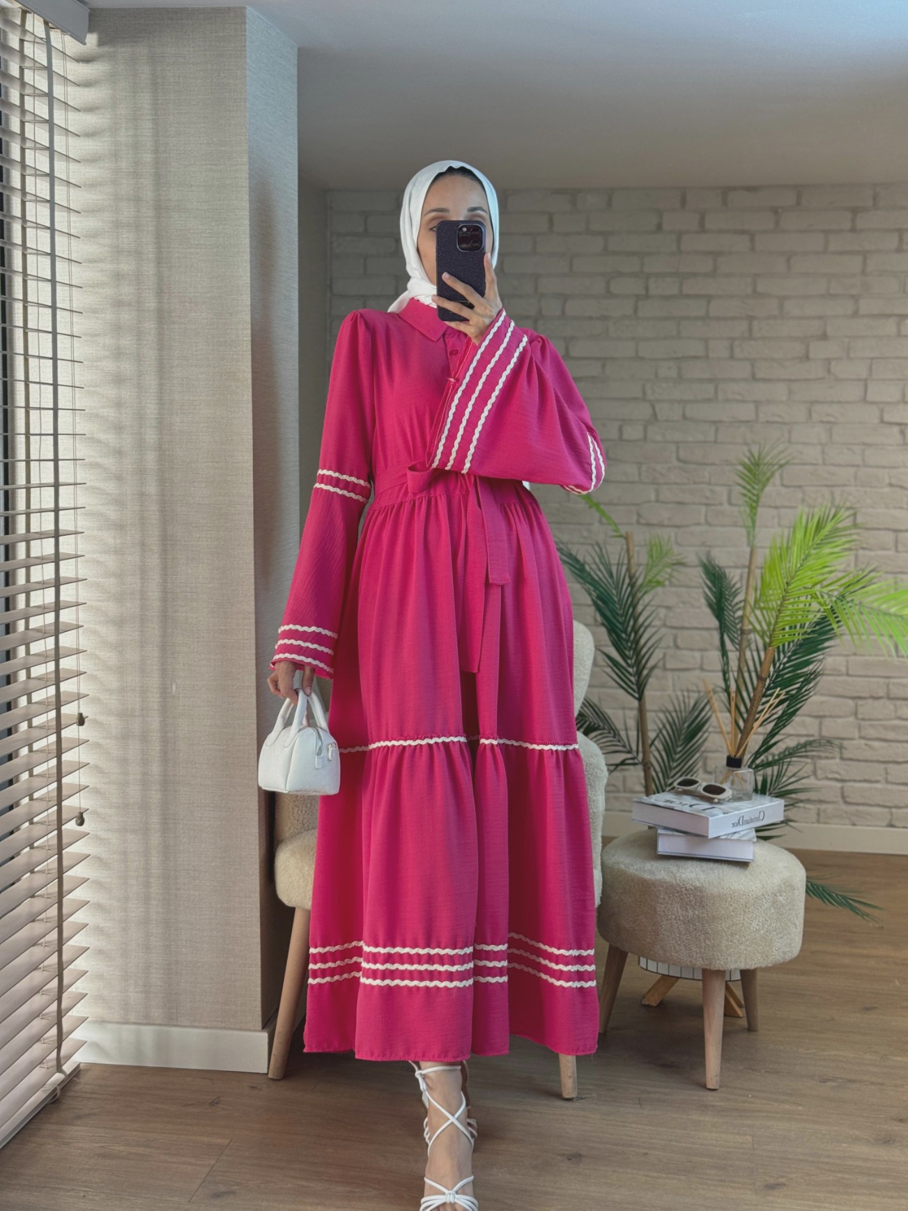 Partial Dress with embroidered sleeves and skirt -Fuchsia