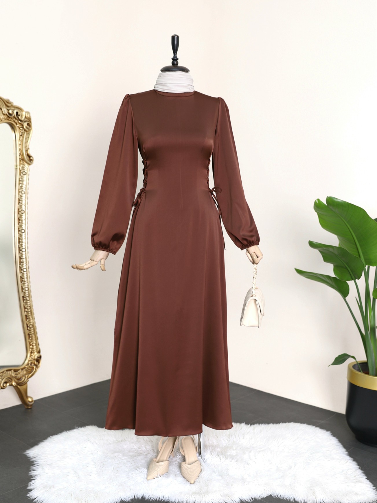 The Lace-Up Sides High Neck Elastic Sleeve Dress is a modern piece that combines elegance and comfort. The lace-up details on the sides add a dynamic and graceful touch, while the high neck design provides a sophisticated look. The elastic sleeves offer a comfortable fit while enhancing the overall style. Perfect for both everyday wear and special occasions, this dress will become a standout piece in your wardrobe.