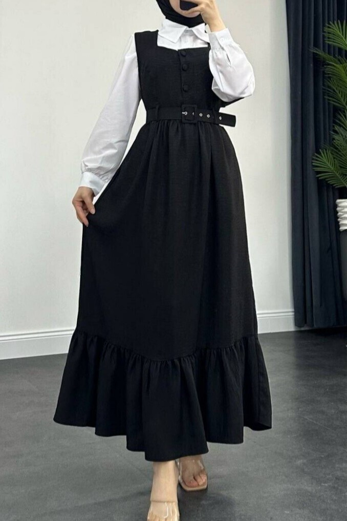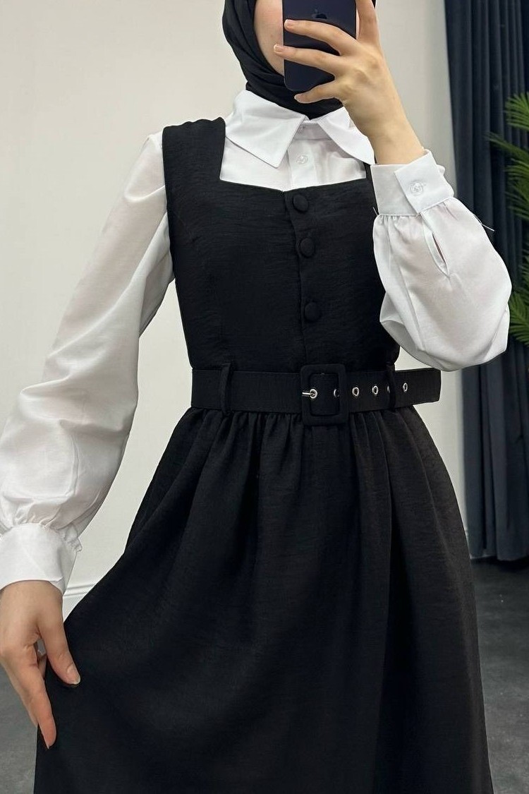 The button-up shirt and pinafore two-piece set is an elegant combination that offers both style and comfort. The button-up shirt provides a classic look, while the pinafore portion offers a modern, figure-flattering cut. This two-piece set is a chic option suitable for both casual wear and special occasions. Perfect for those seeking both sophistication and comfort, the button-up shirt and pinafore two-piece set allows you to achieve a refined style.