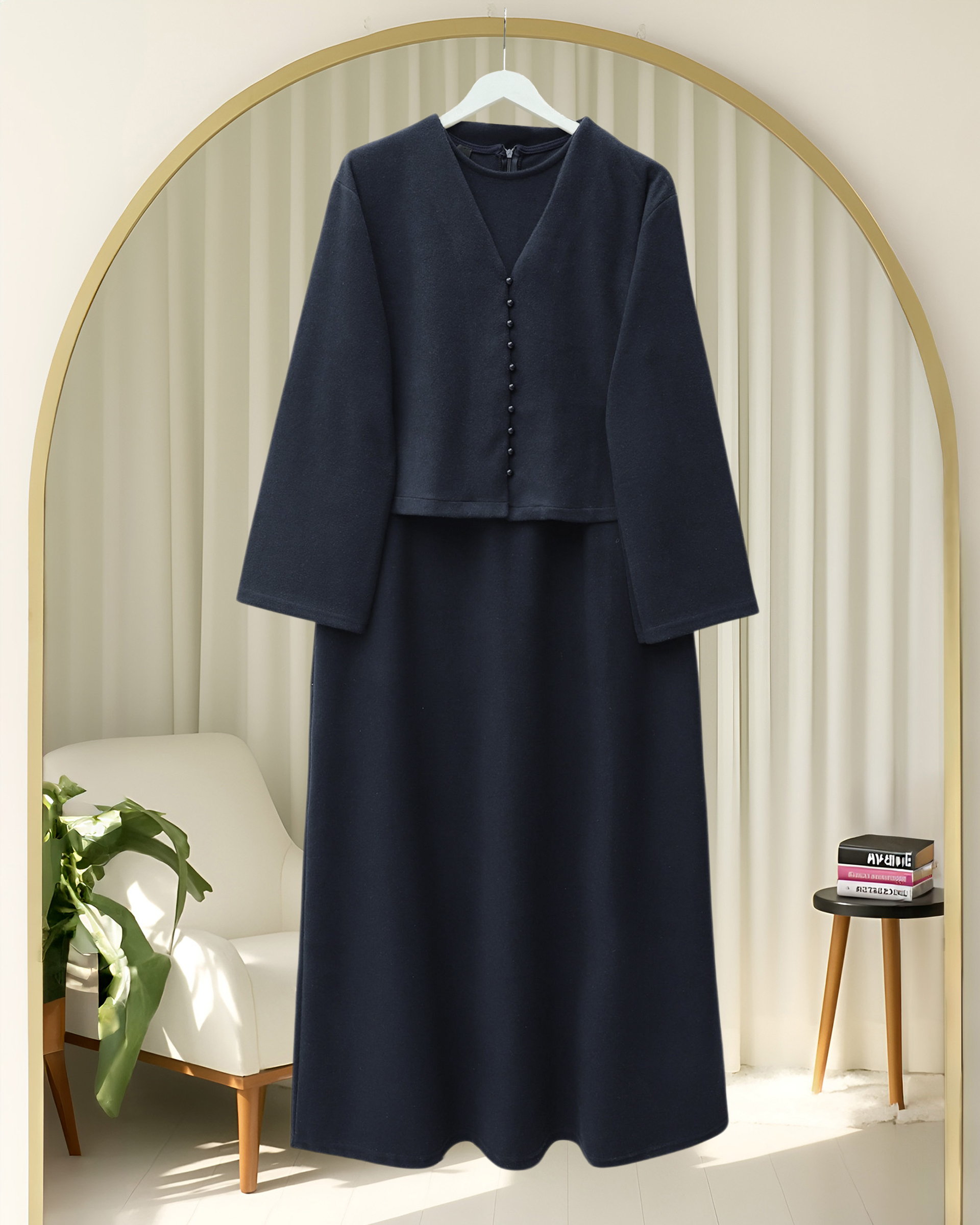 Selanik Dress Suit with Crop Jacket -Navy blue -
