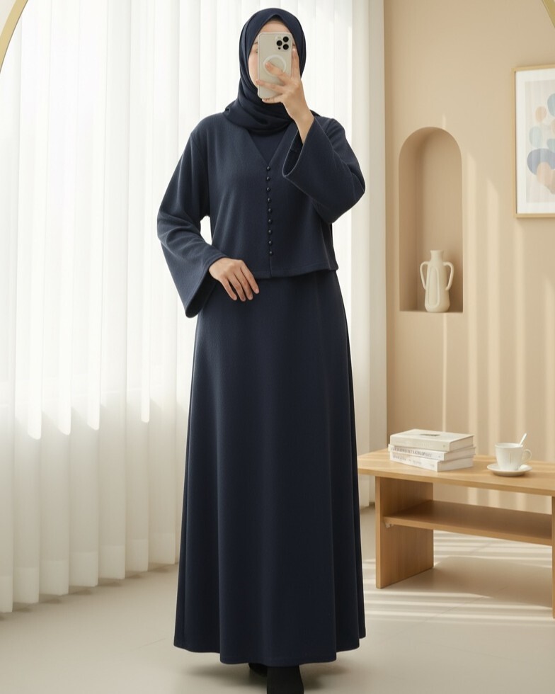 Selanik Dress Suit with Crop Jacket -Navy blue
