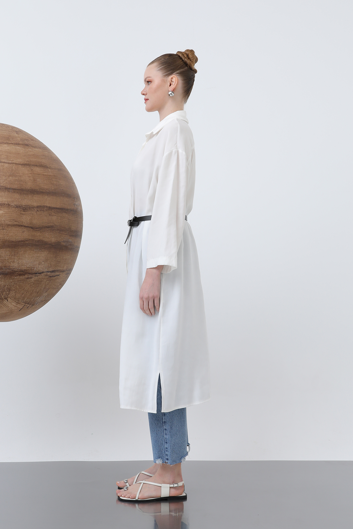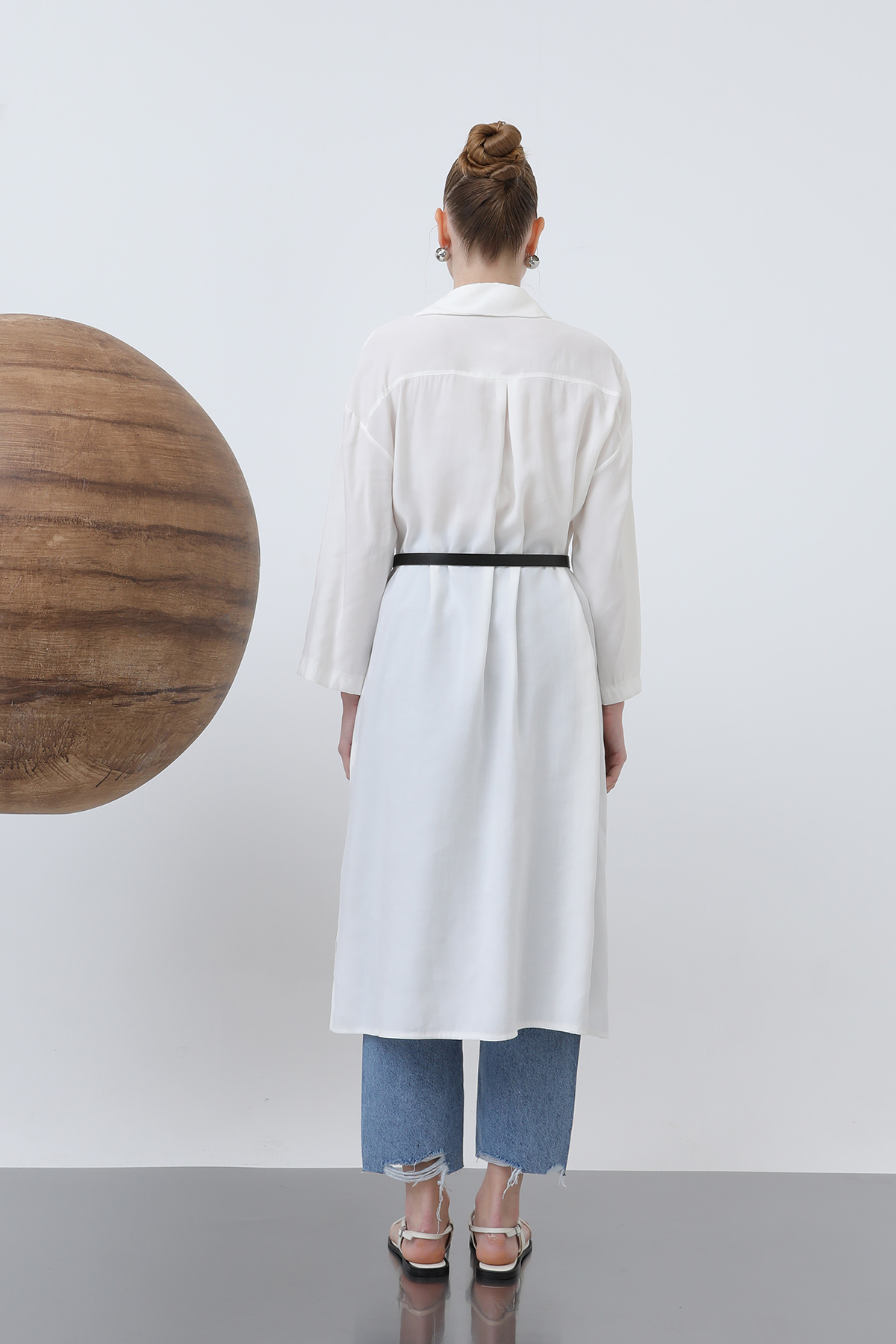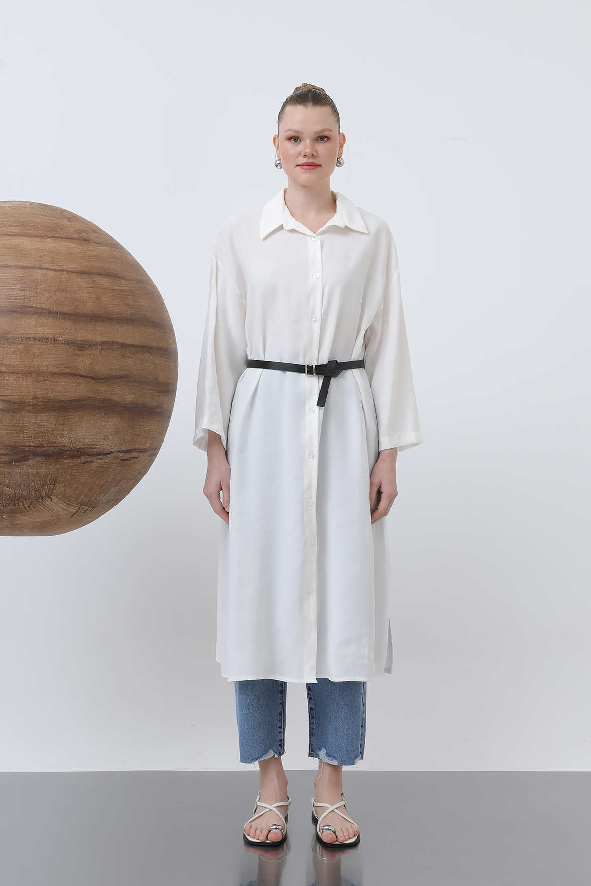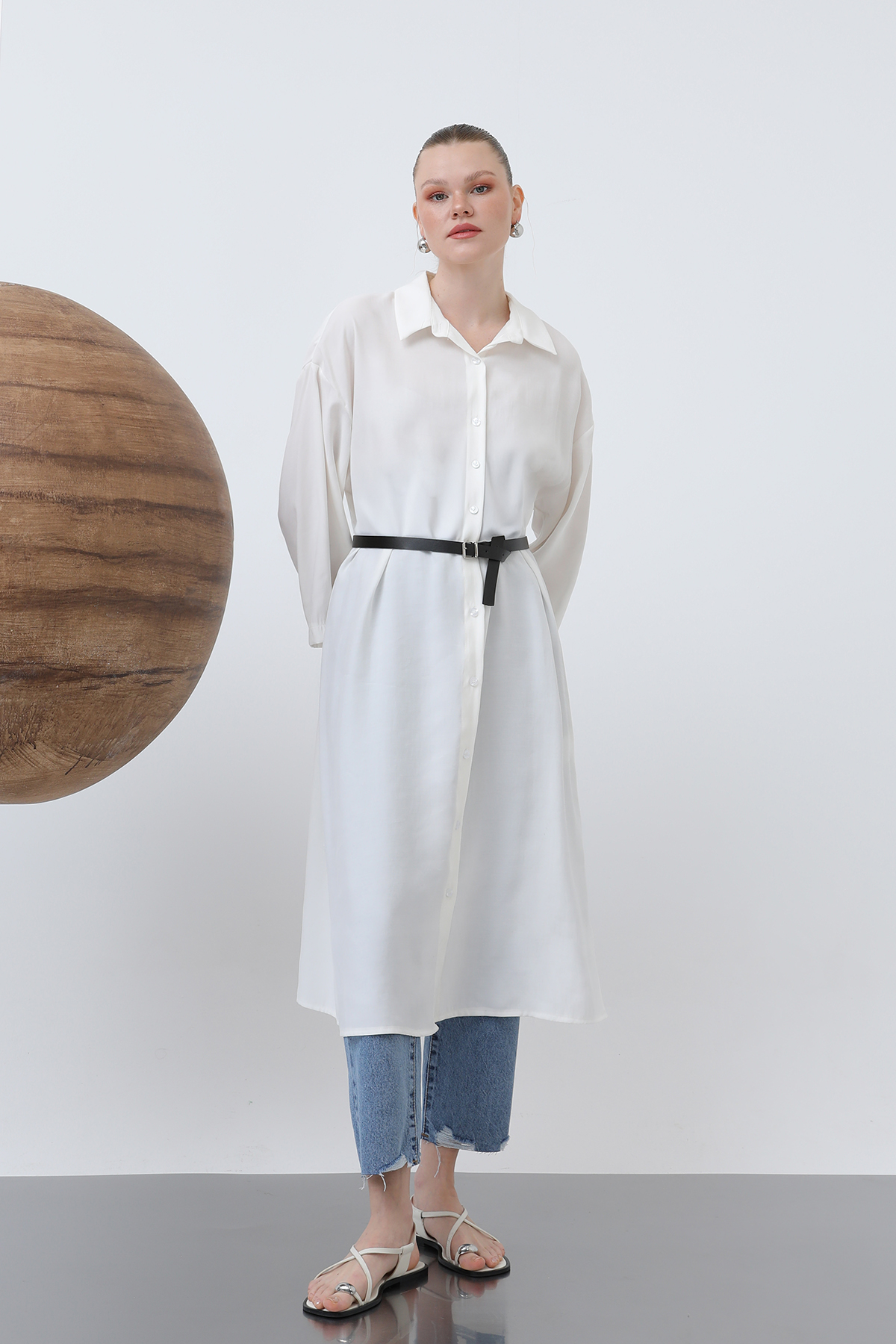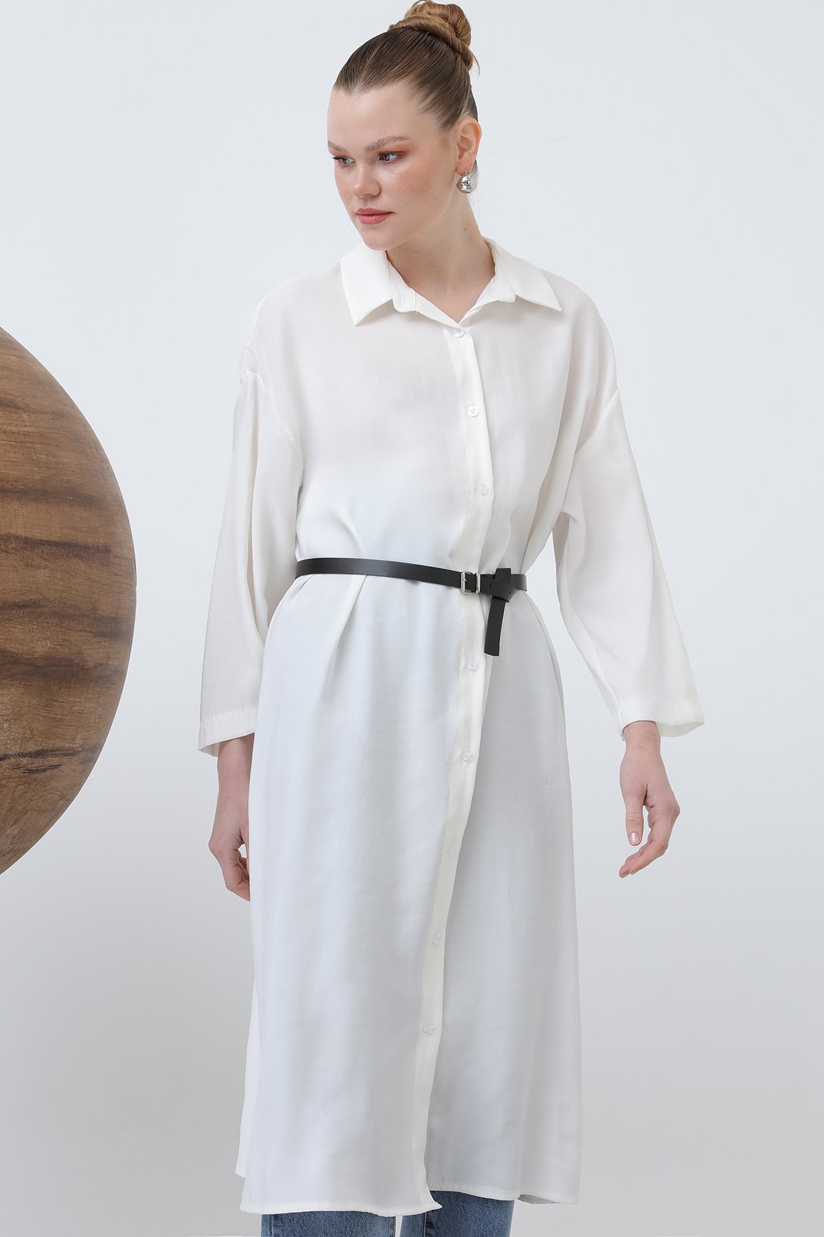Offering a modern and chic look, this shirt dress accentuates your waist with a long belt detail, creating a sleek silhouette. Easily worn with your everyday outfits, this dress reflects your feminine and unique style.