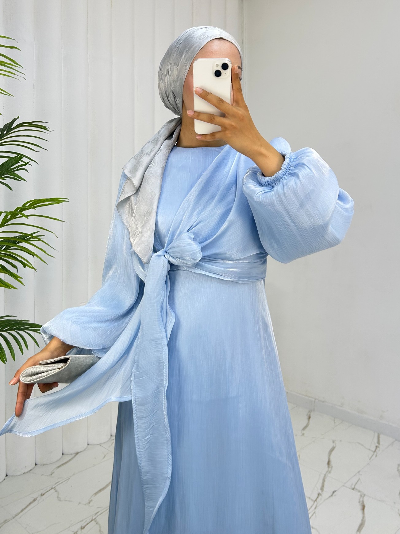 Asymmetrical Crepe Dress with Front Allery Skirt -Blue