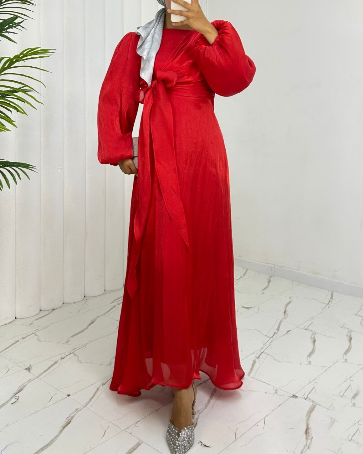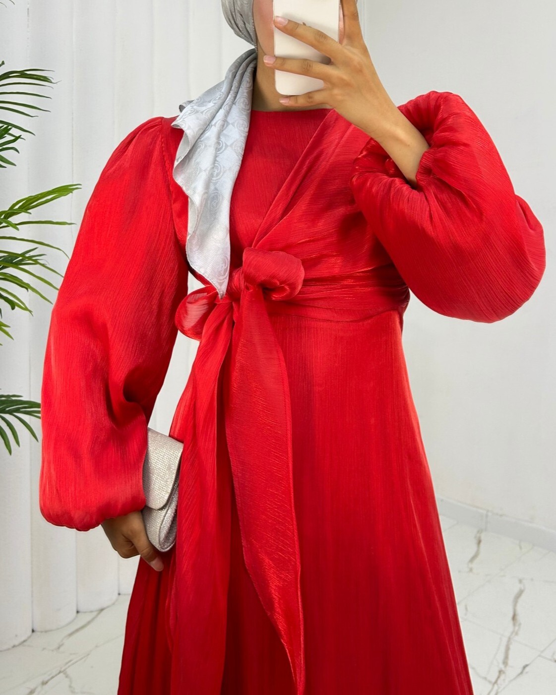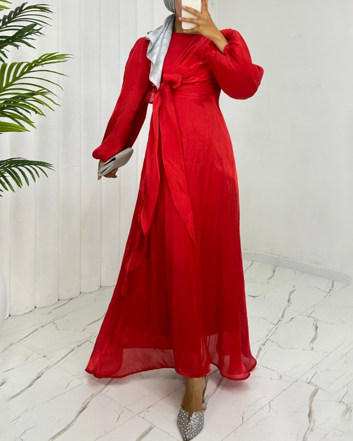 Ethnic Pattern Skirt Piece Lined Chiffon Dress -Red