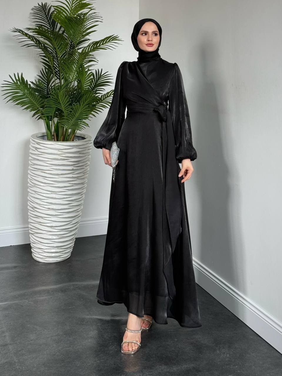 Oval Cut Stand Collar Blouse Skirt Muslin Set -Black