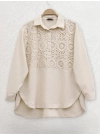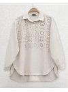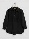 Lace Embroidered Skirt Button Detailed Shirt -Black