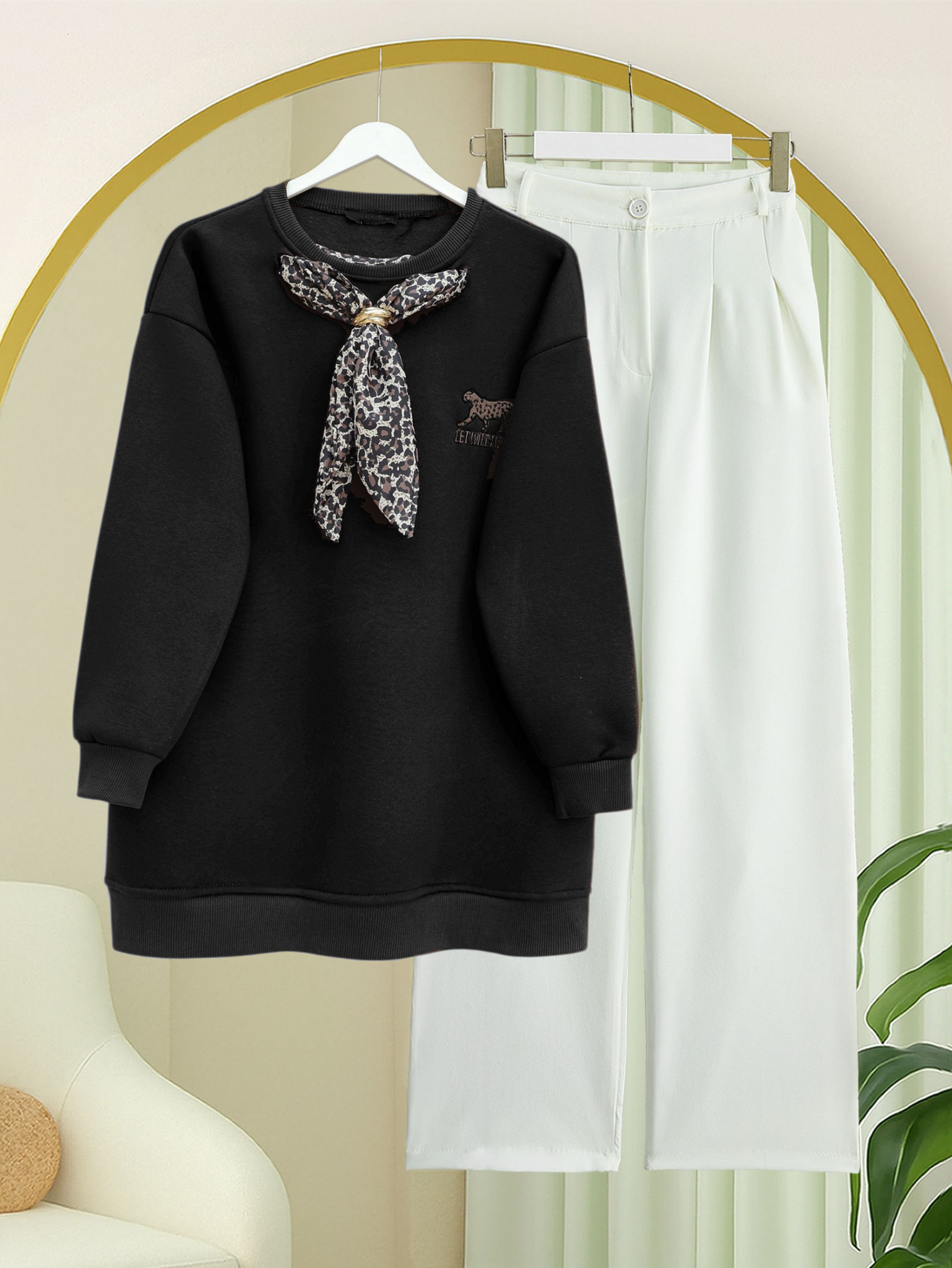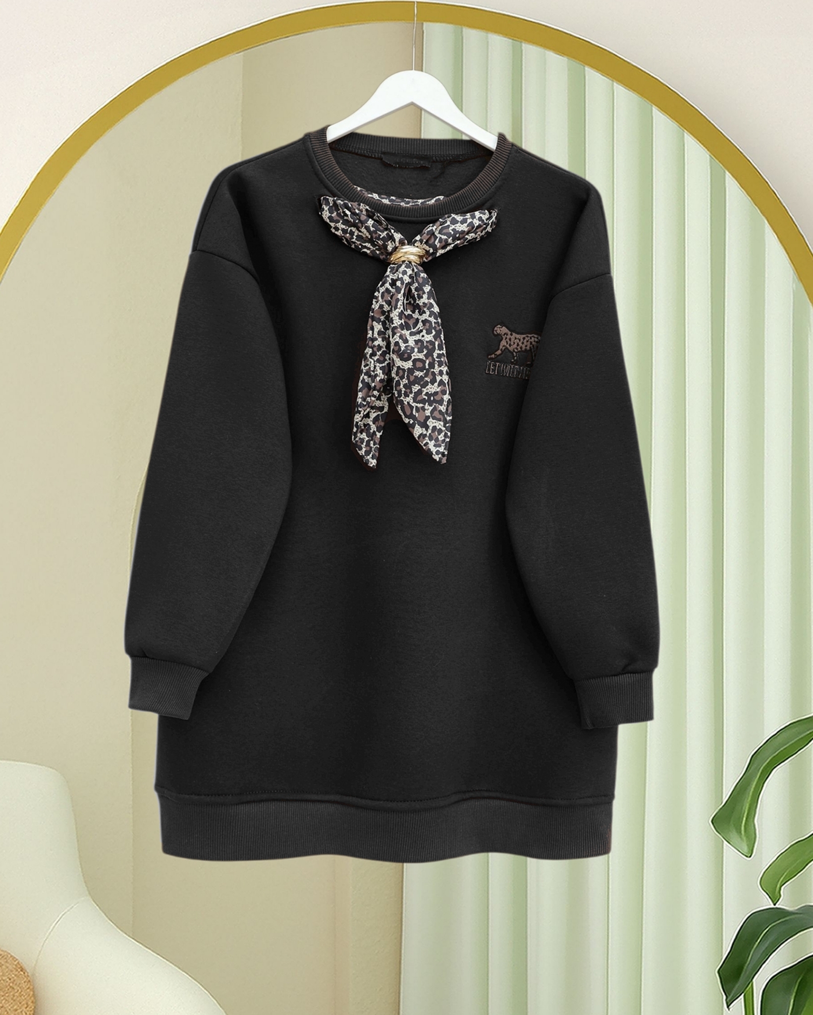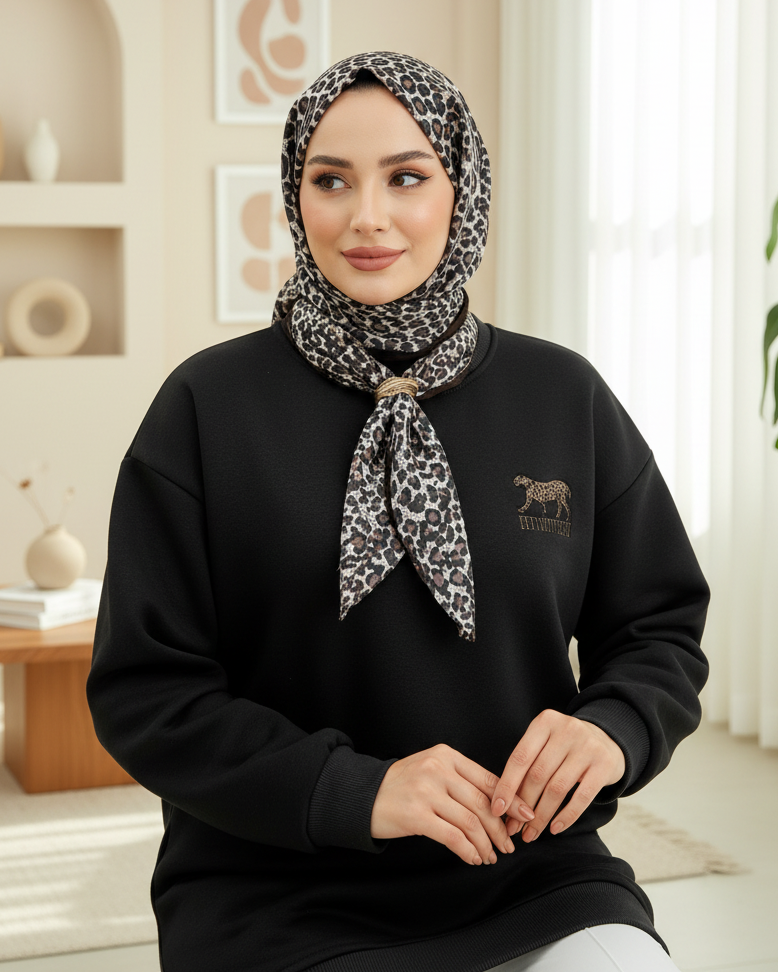 Scarf Leopard Emblem 3 Yarn Sweater -Black