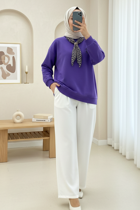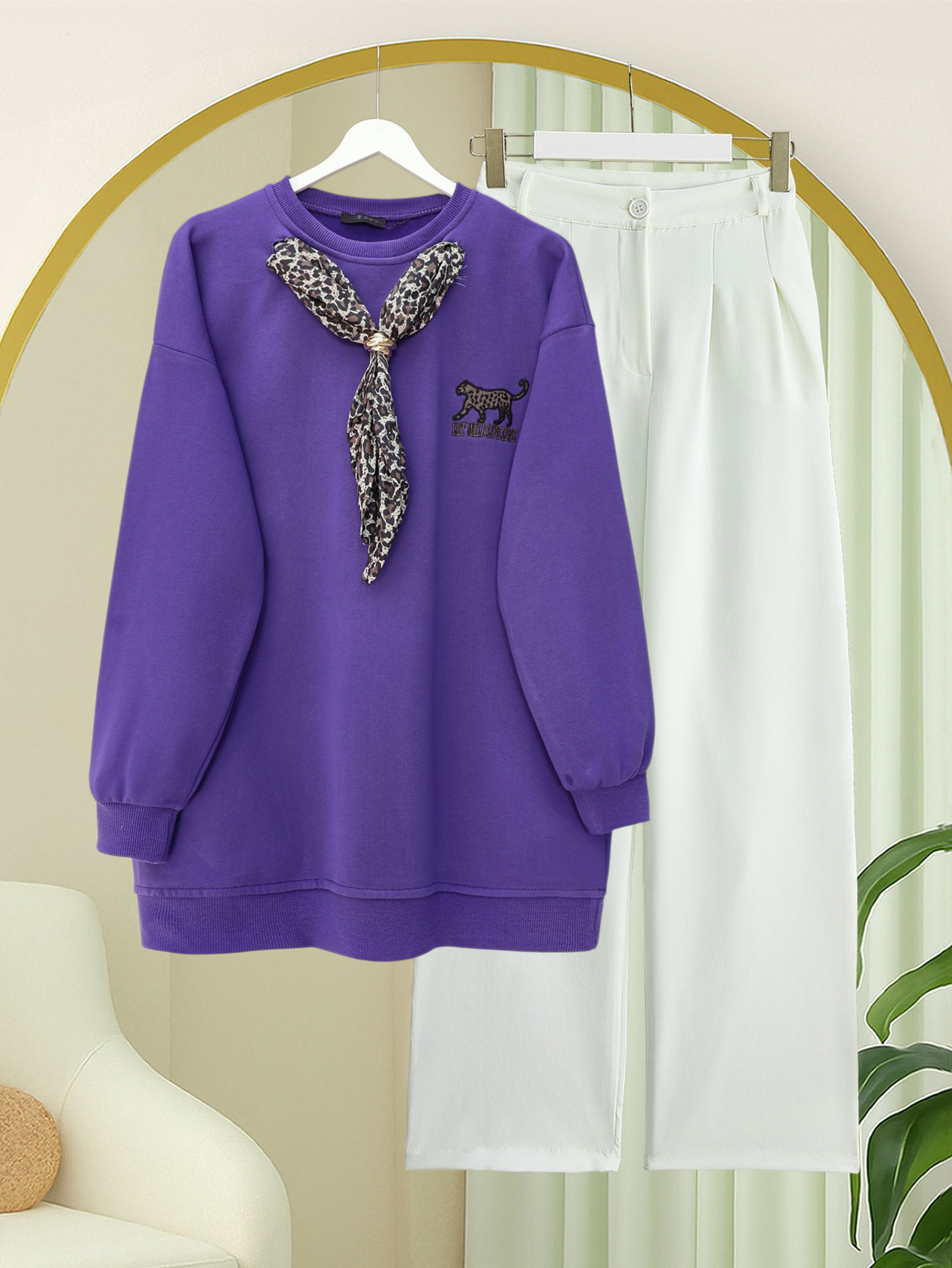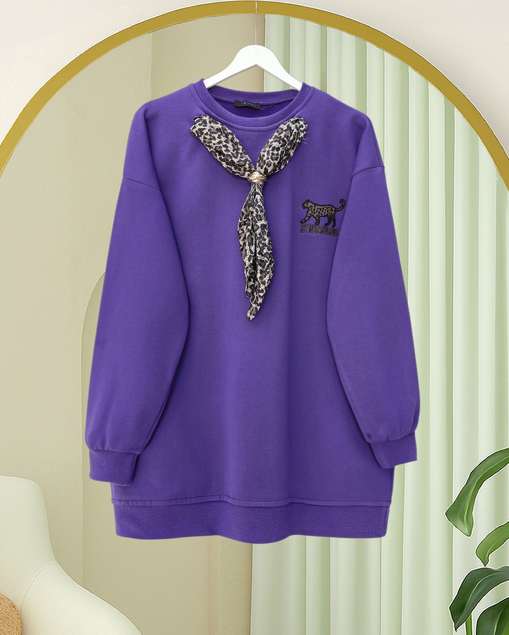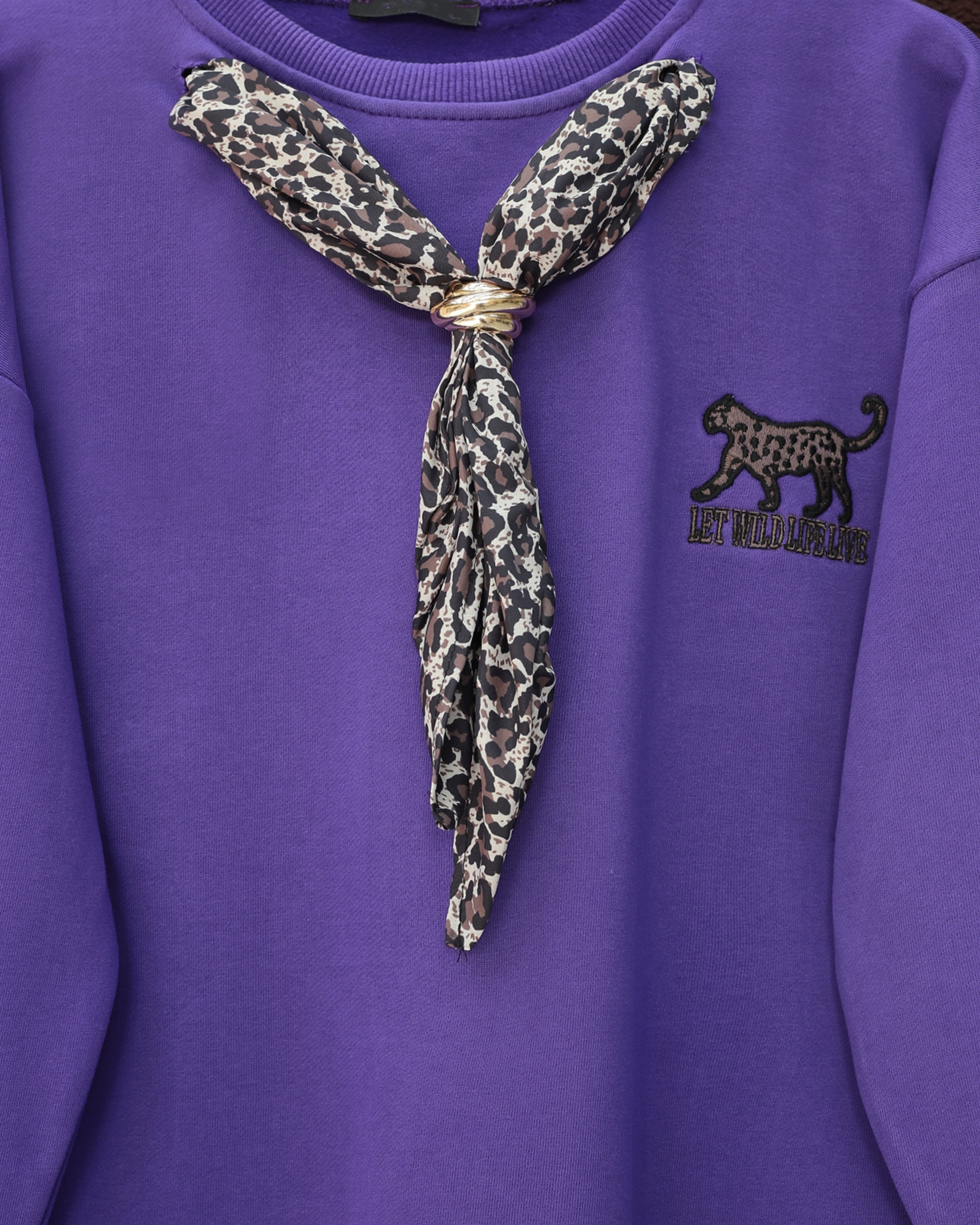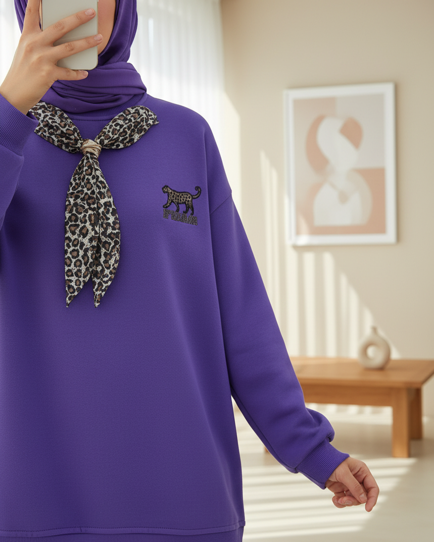 Scarf Leopard Emblem 3 Yarn Sweater - Purple