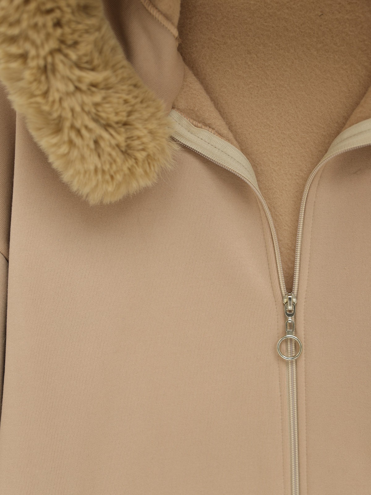 Hooded Fur Zippered Fleece - Beige - 118-1049-R56