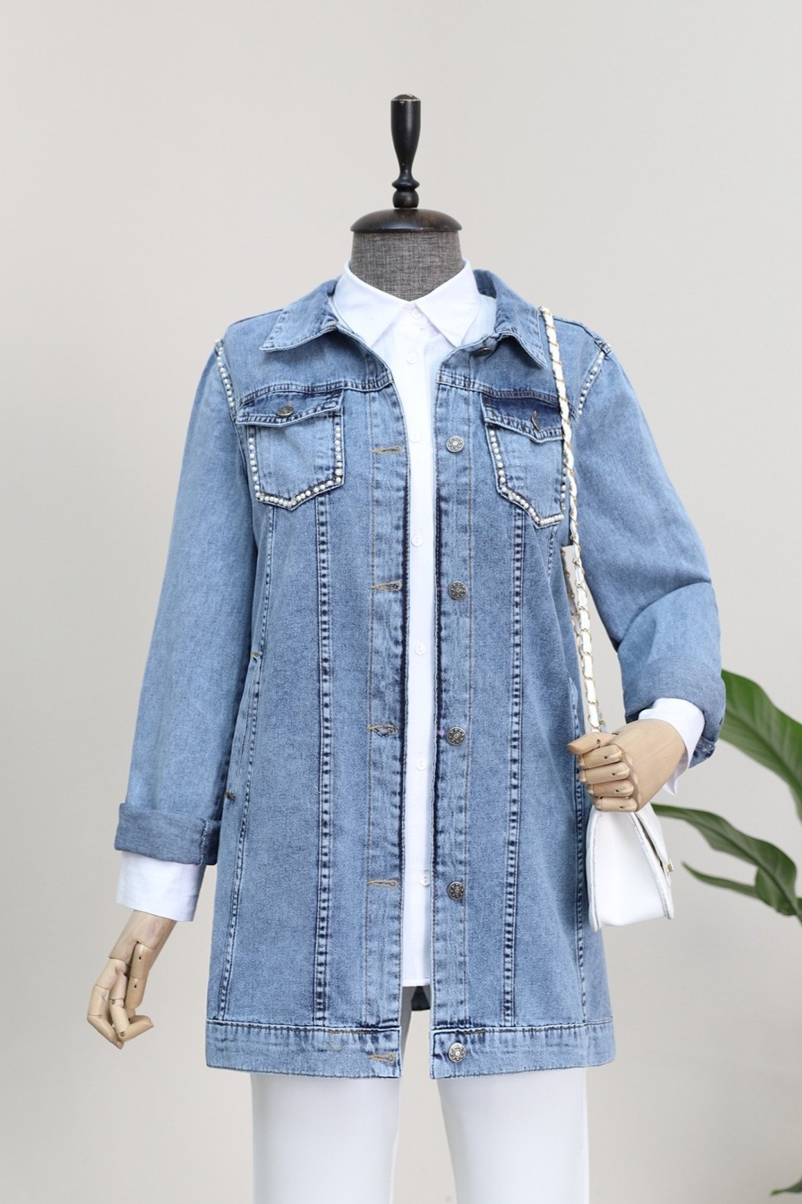 The Pearl-Detail Pocket and Shoulder Random Washed Denim Jacket is a perfect piece that combines style and modernity. The pearl details on the pockets and shoulders add a sophisticated touch, while the random wash technique gives the jacket a dynamic and unique look. This denim jacket can be easily paired with any outfit, making it suitable for both daily wear and special occasions. The Pearl-Detail Pocket and Shoulder Random Washed Denim Jacket will be a standout piece in your wardrobe.