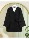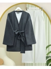 Side Tie Bearded Kimono -Black