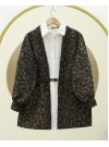 Leopard Patterned Balloon Sleeve Casual Jacket -Smoked