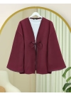 Loose Kimono with Tied Front Leather Detail -Maroon