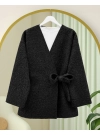 Side Tie Boucle Kimono -Black