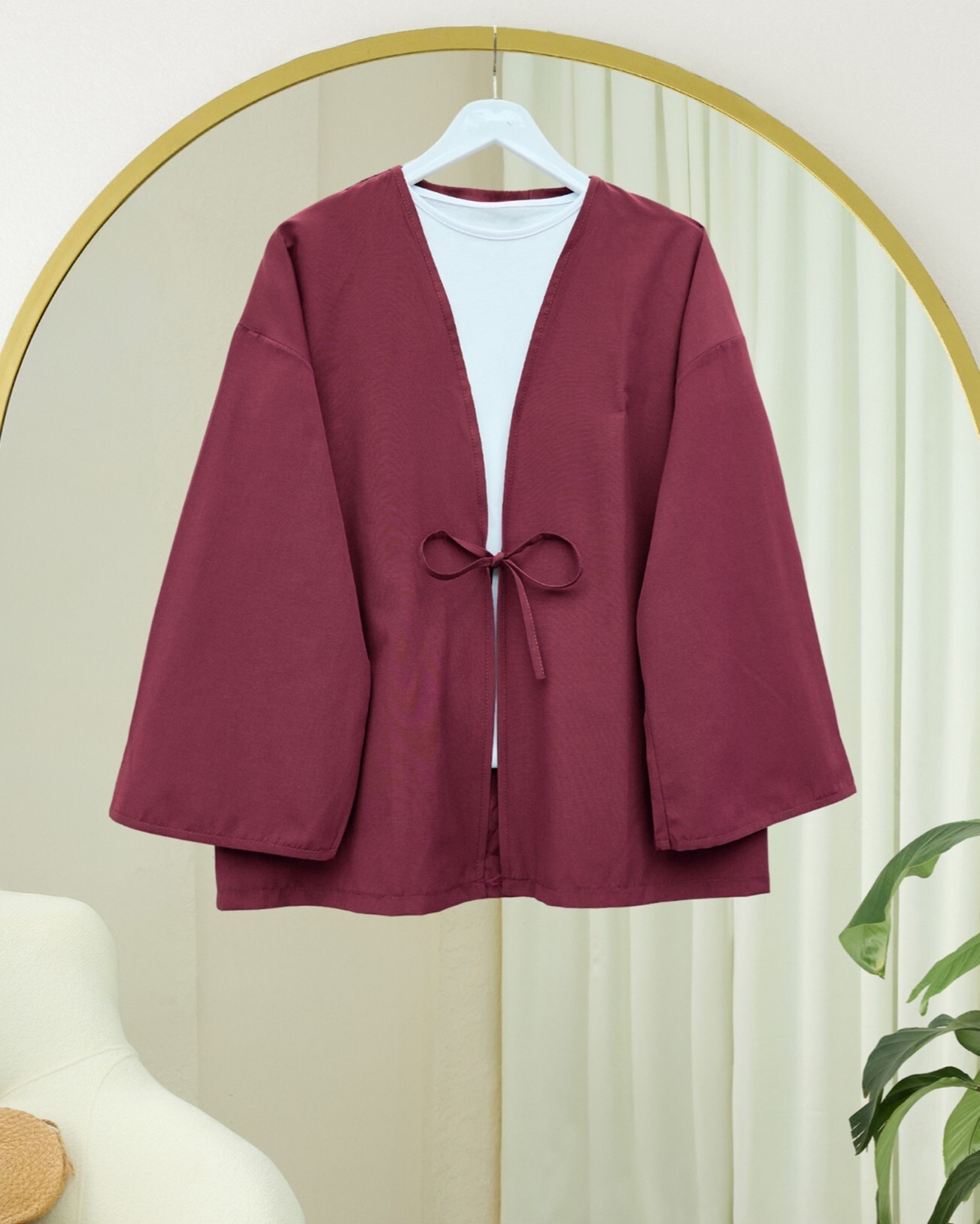 Kimono Set with Double Front Tie and Trousers -Mint Color