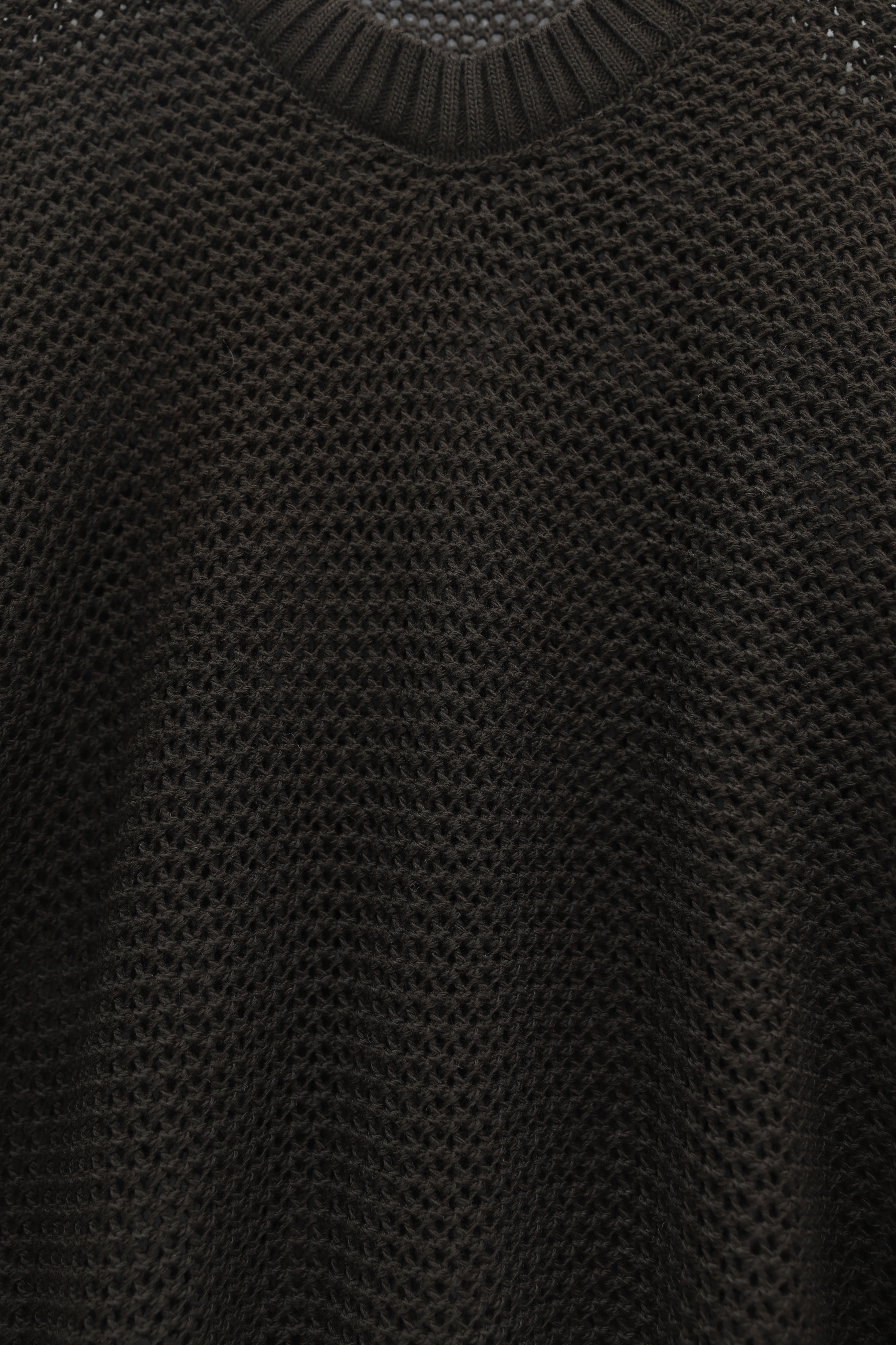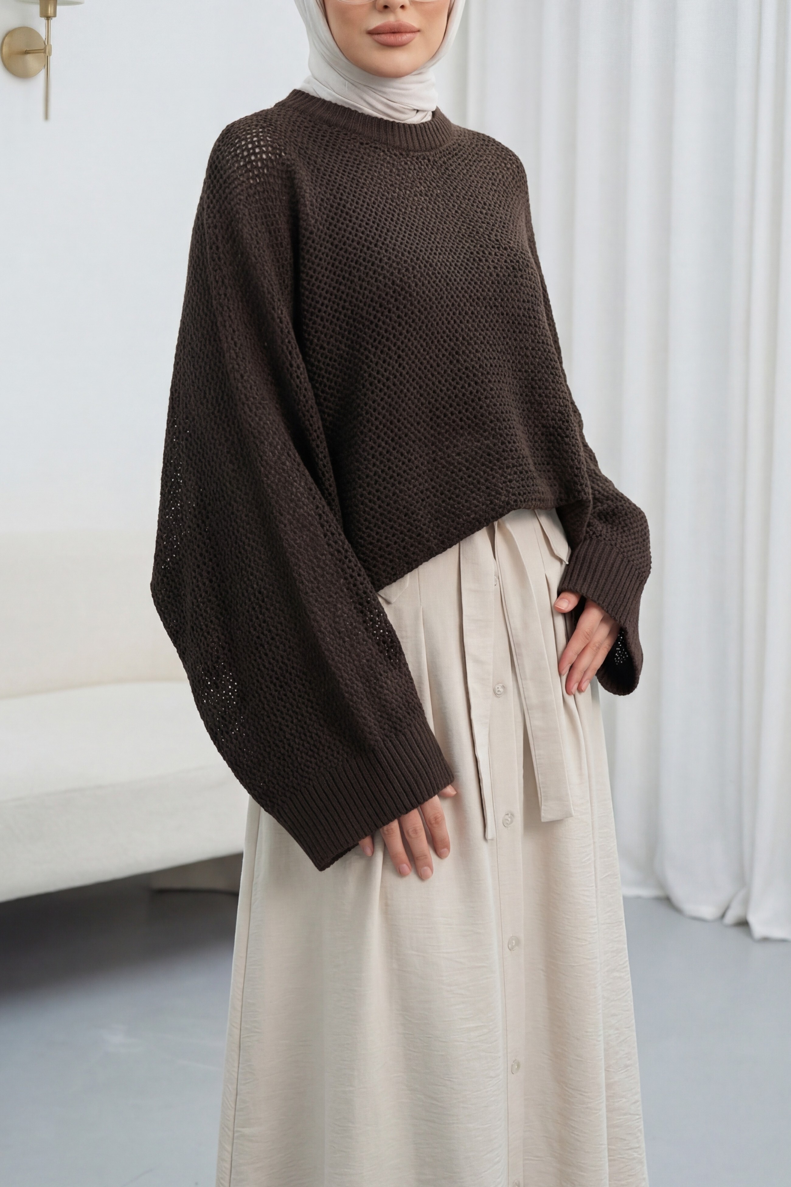 Batwing Sleeve Openwork Knit Sweater -Dark Coffee