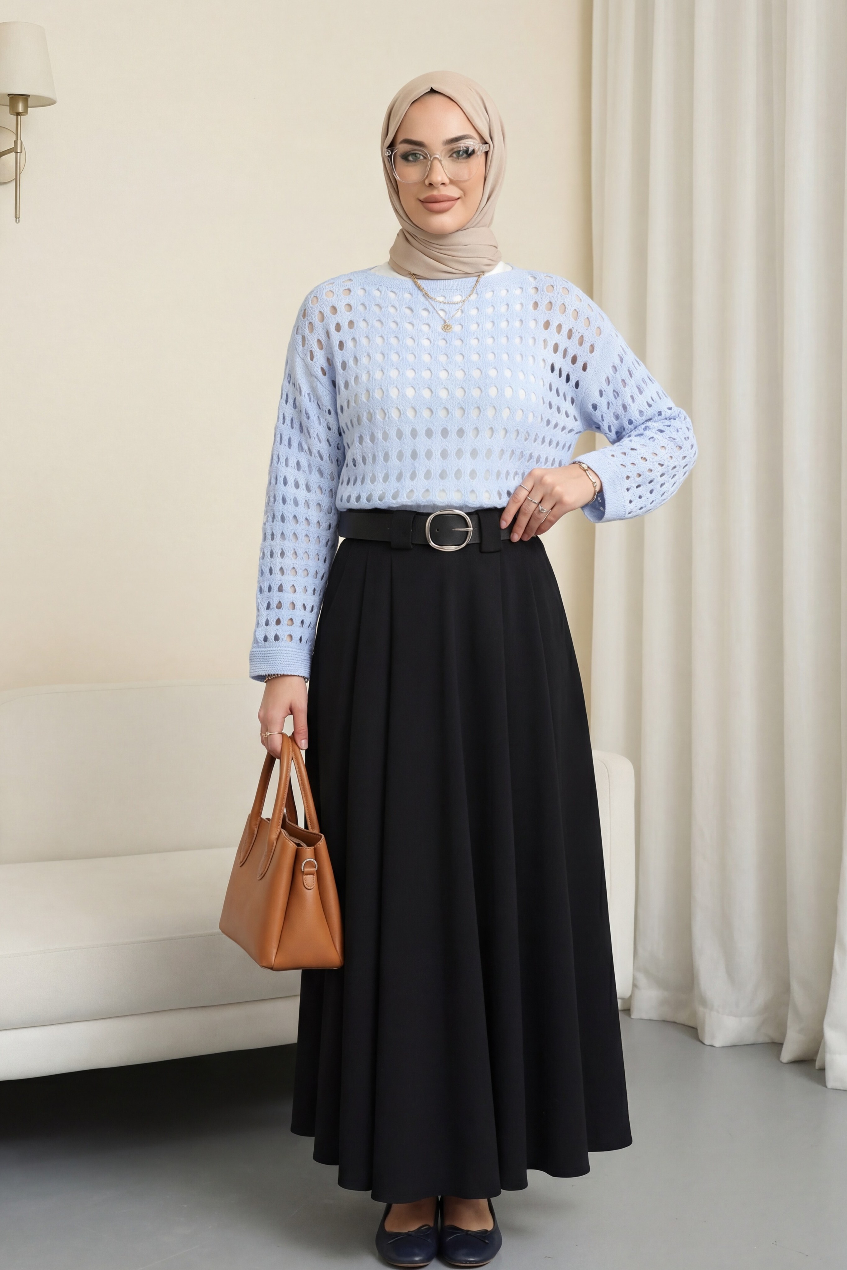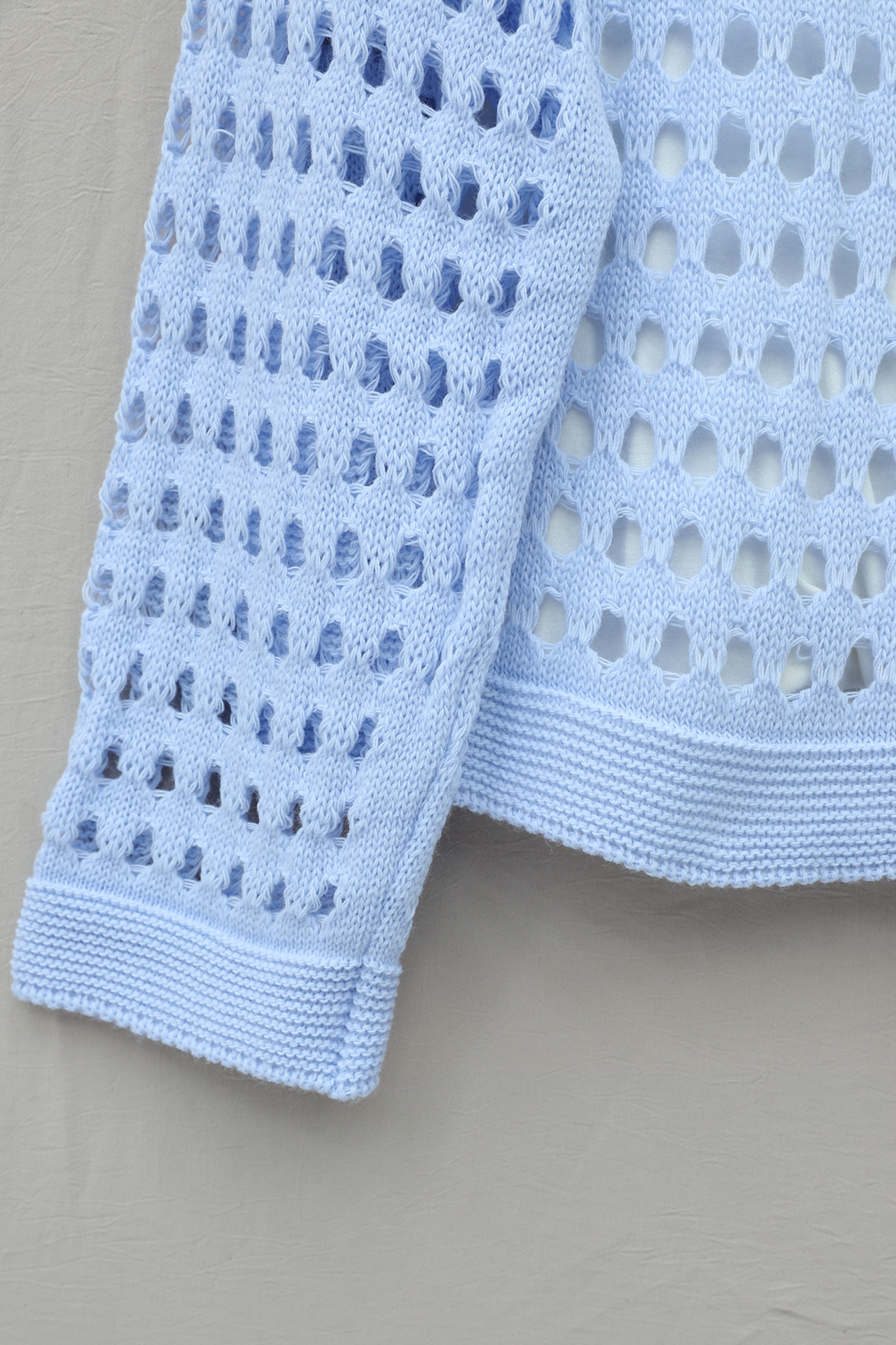 Boat Neck Openwork Knit Sweater -Baby Blue