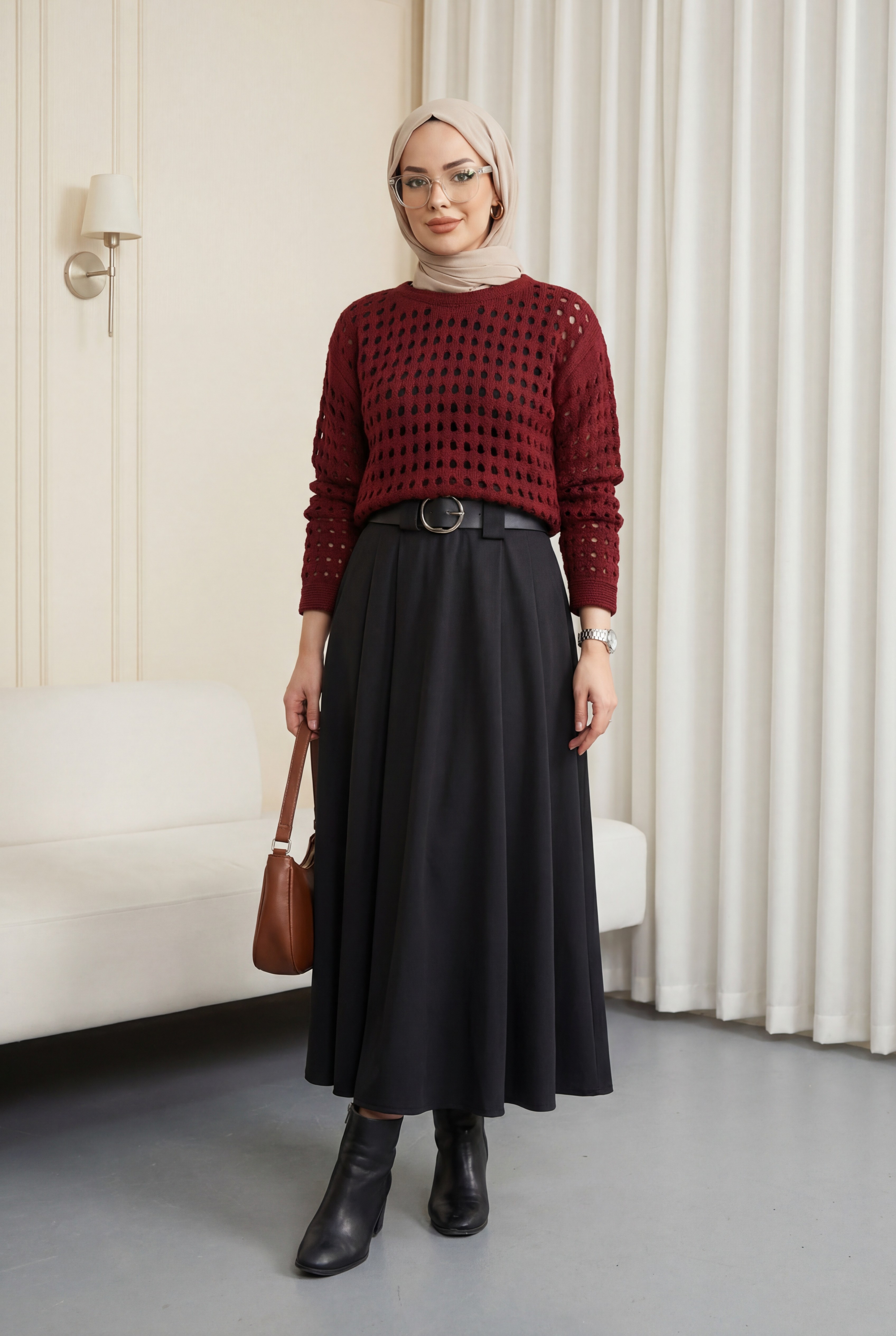 İthal Likralı Krep Kumaş Kiloş Çan Etek -Navy blue