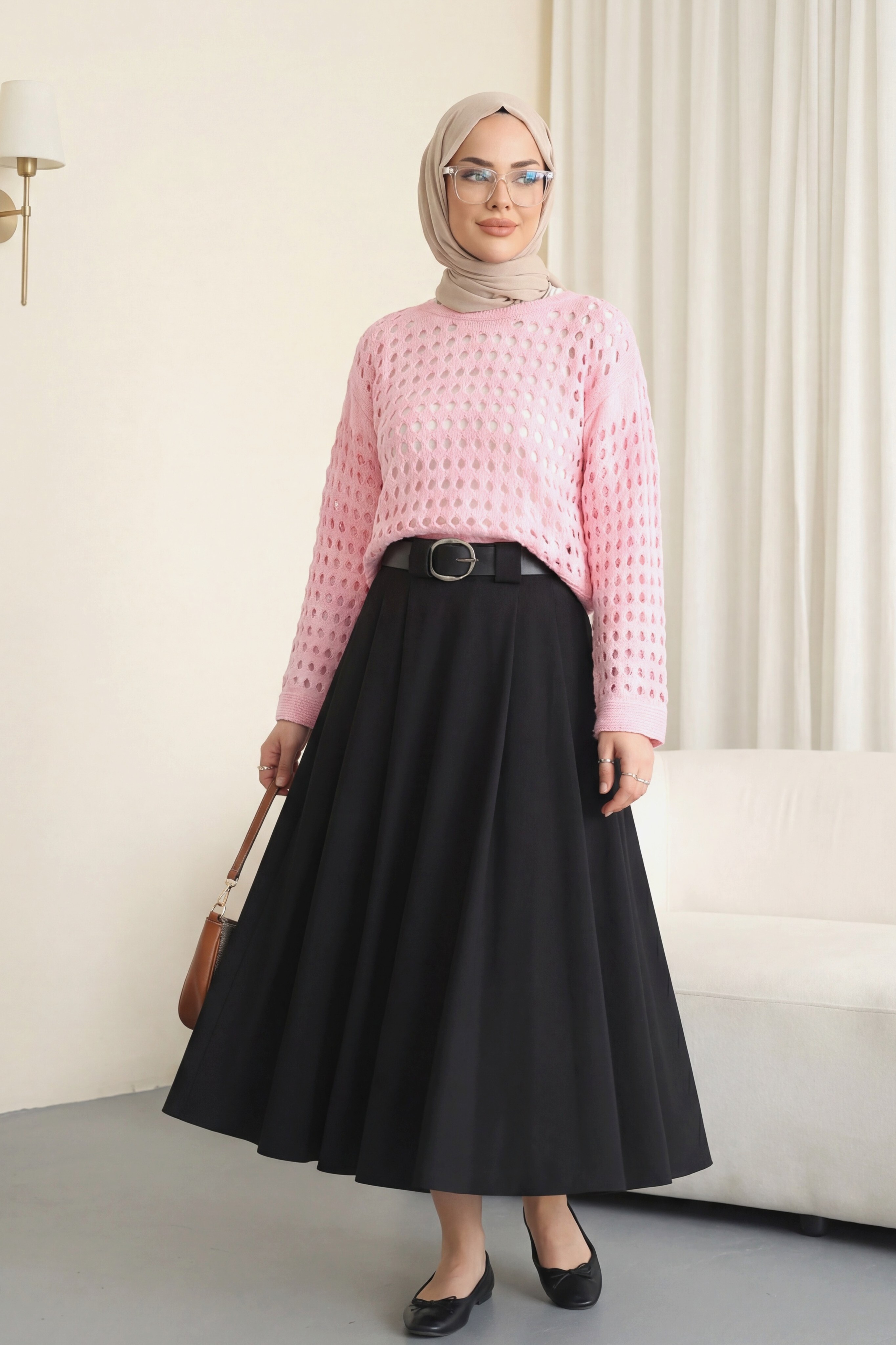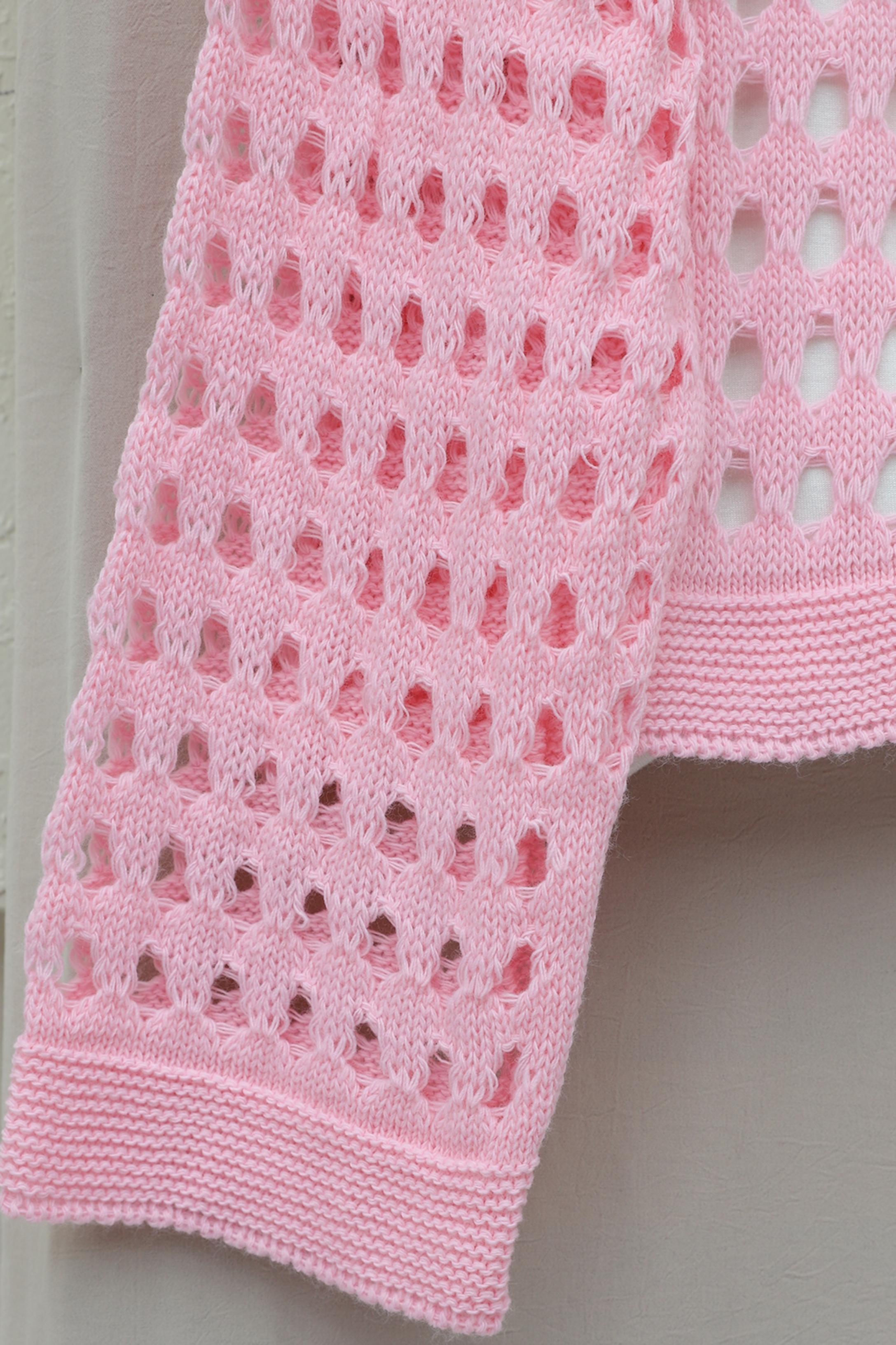 Boat Neck Openwork Knit Sweater -Pink