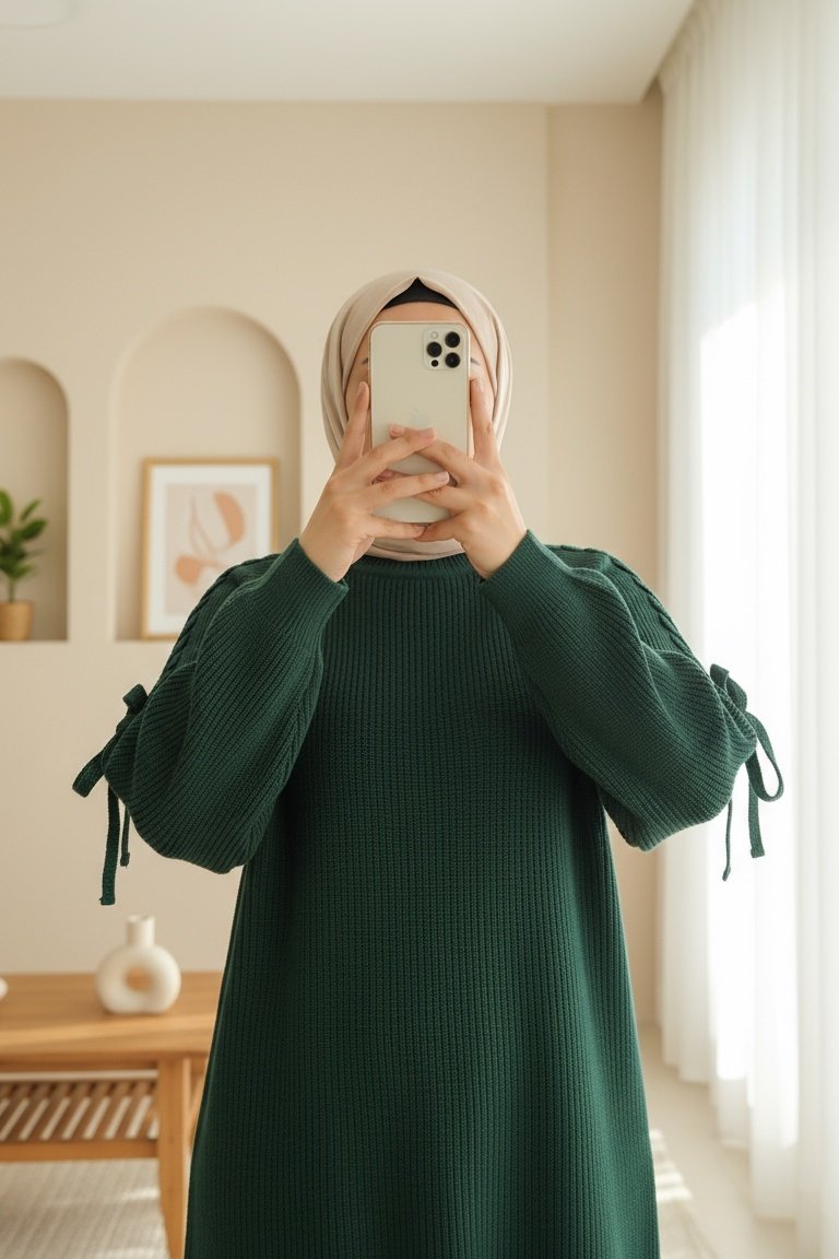 Casual Knit Tunic with Shoulder Braid -Emerald