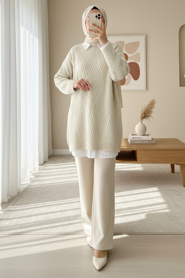 The Diamond Patterned Knit Tunic is the perfect choice for those seeking an elegant and stylish look. Its unique diamond pattern knit design adds a modern touch to the tunic, while the soft and stretchy knit fabric ensures comfortable wear. Suitable for both everyday use and special occasions, this tunic highlights your style and sophistication. The Diamond Patterned Knit Tunic will become an essential piece in your wardrobe.