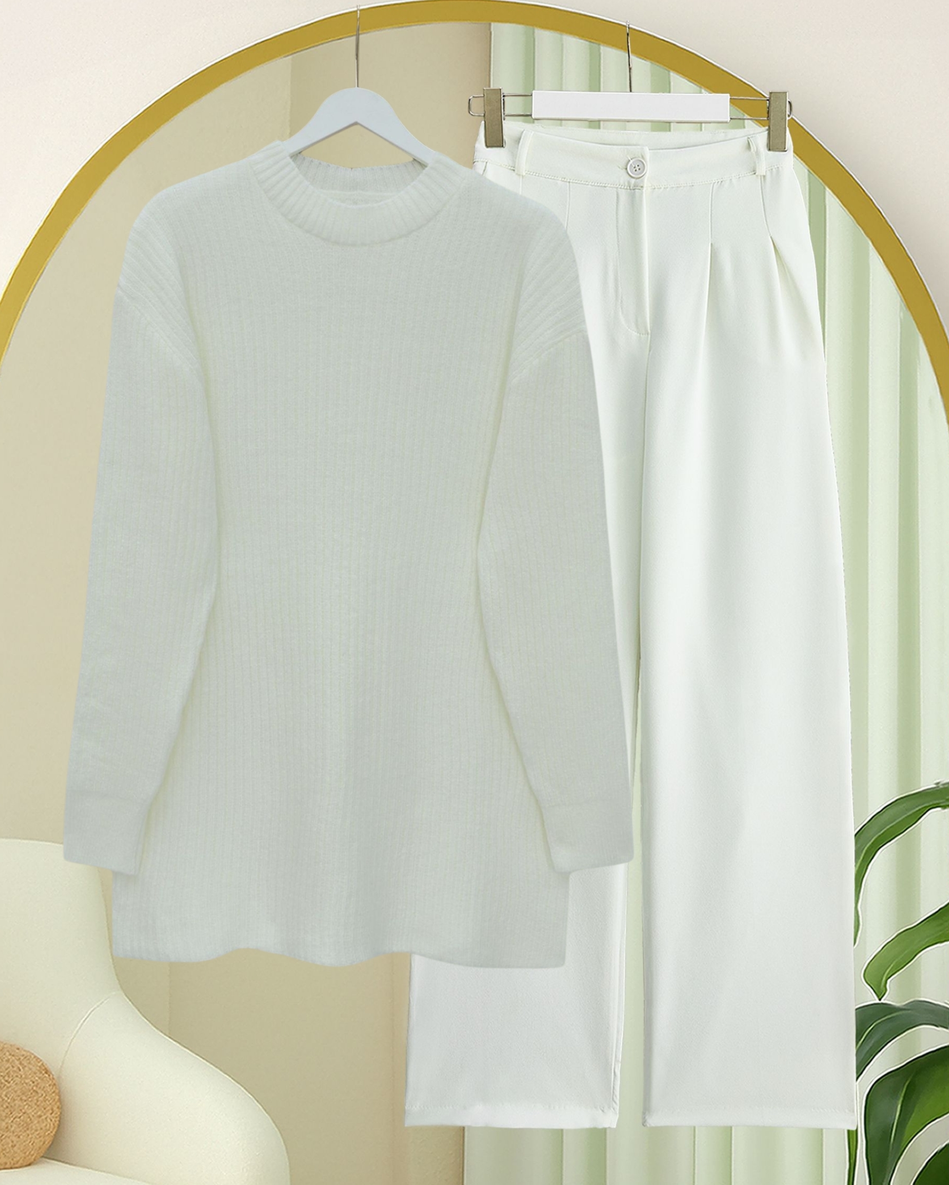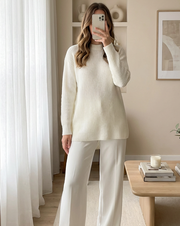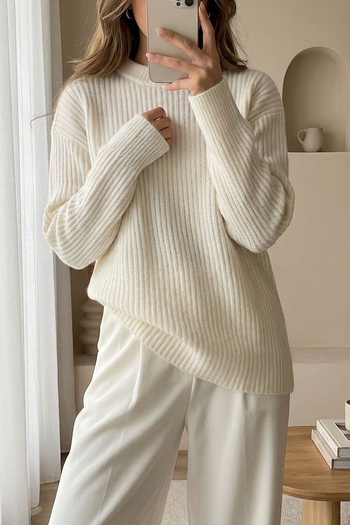 Long Ribbed Knit Sweater -White