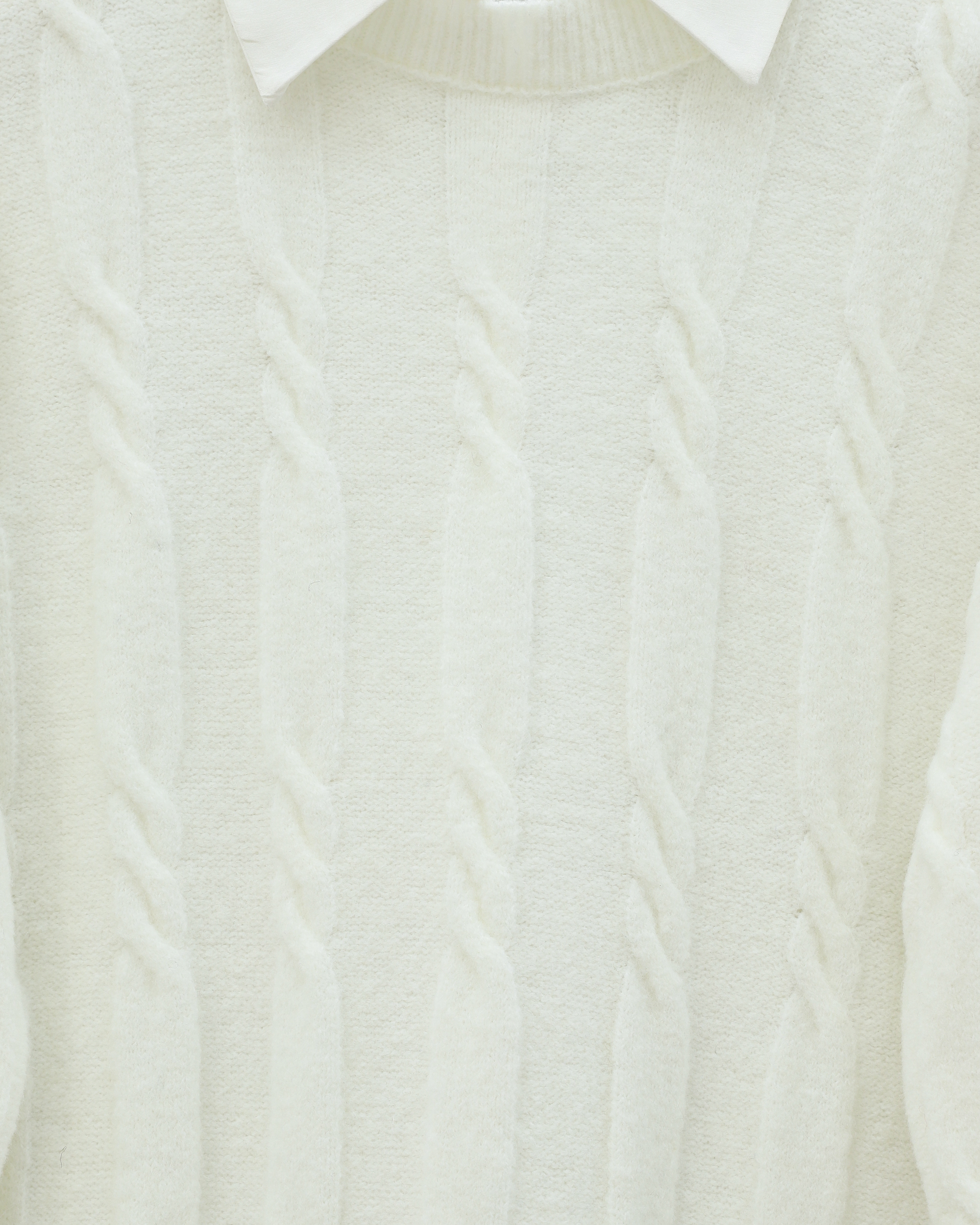 Soft Knitted Sweater with Embossed Pattern -Ecru