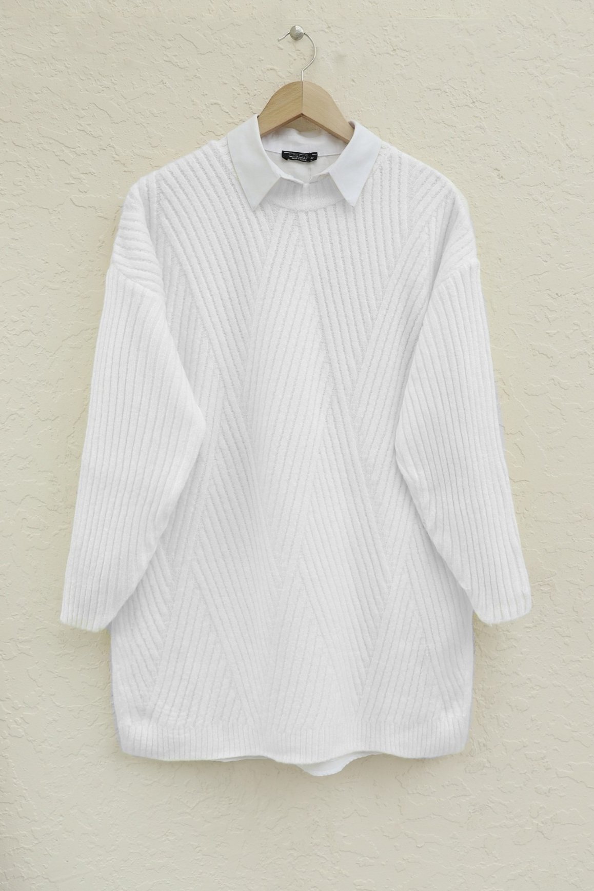 Execution Knitting Diamond Patterned Knitwear Tunic -White