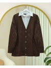 Openwork Diamond Patterned Knitwear Cardigan -Brown