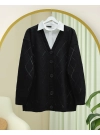 Square Patterned Knit Tunic with Stone Details -Black
