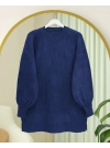 Soft Knit Tunic with Drawstring Sleeves and Stripes -Navy blue