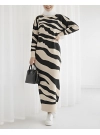 Slit Patterned Knit Dress -Black