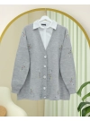 Stone-Buttoned Branch Patterned Knitwear Cardigan -Grey