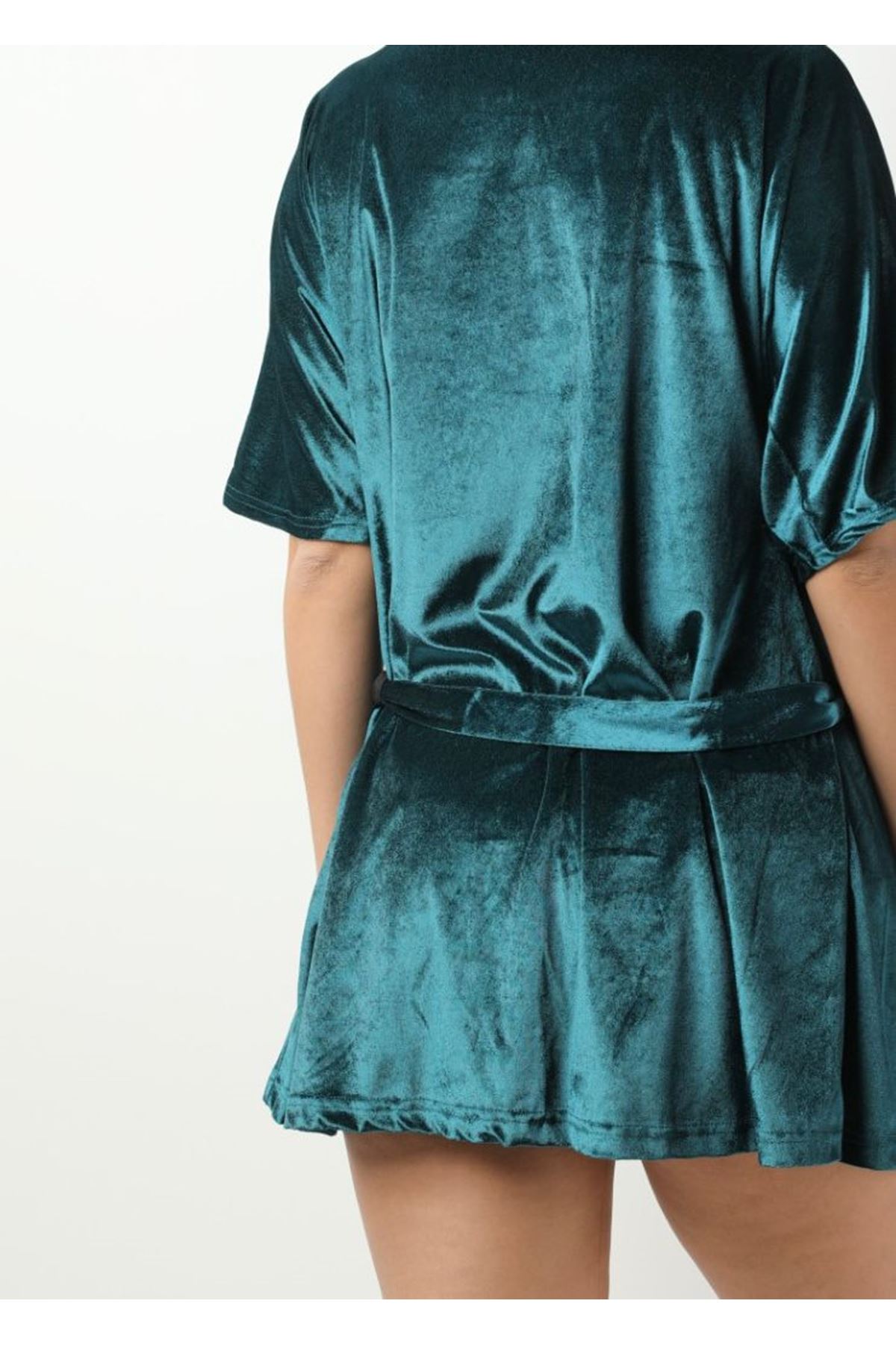 Petrol Green Velvet Lace Dressing Gown & Nightgown Set of 3