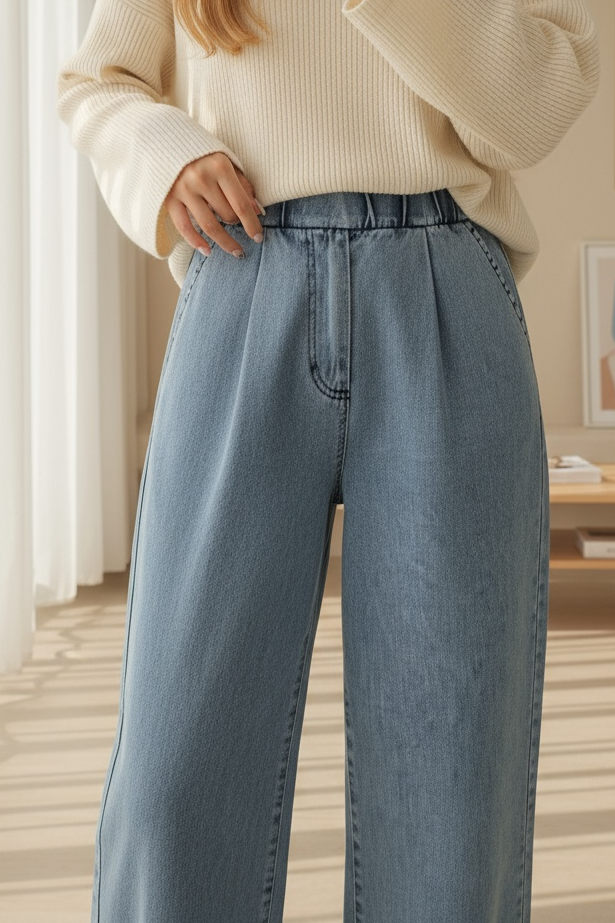 Double Pocket Elastic Waist Velcro Pleated Trousers -Ice Blue