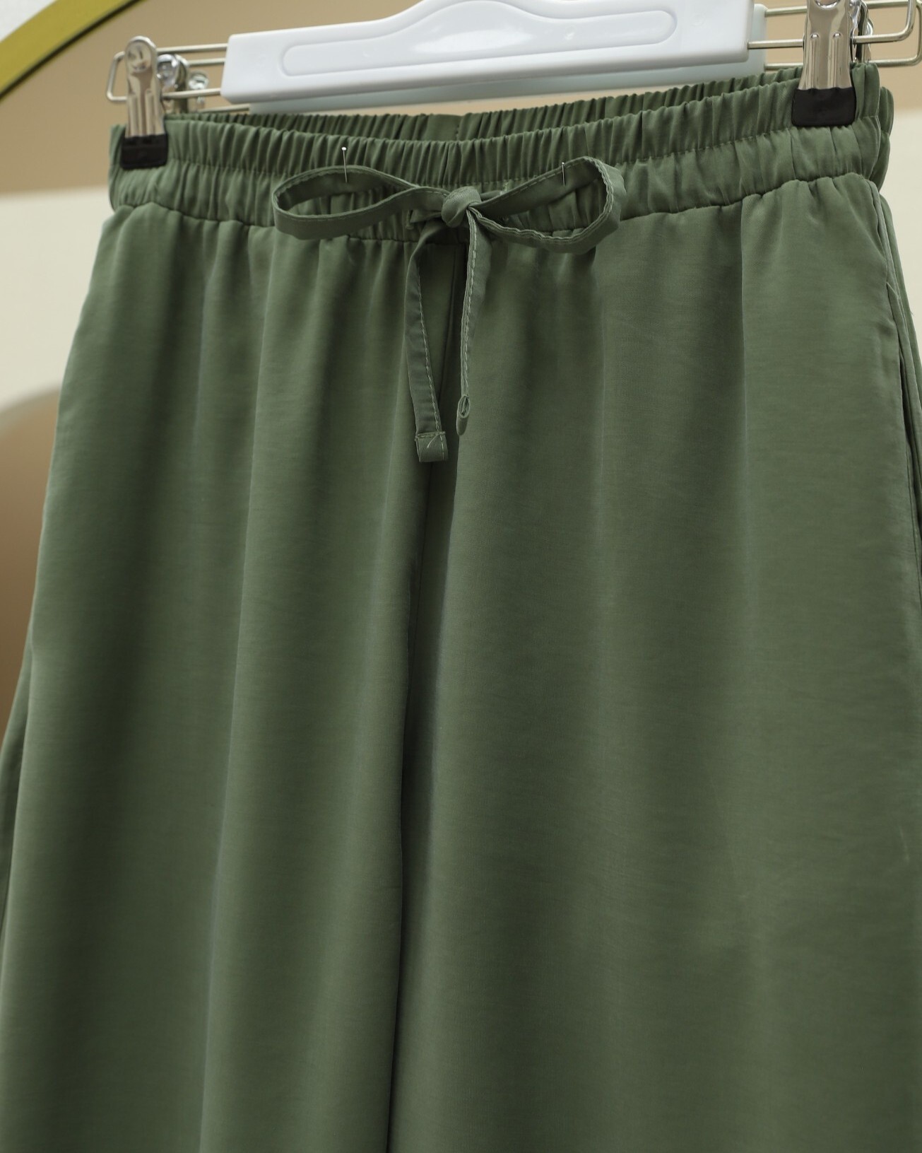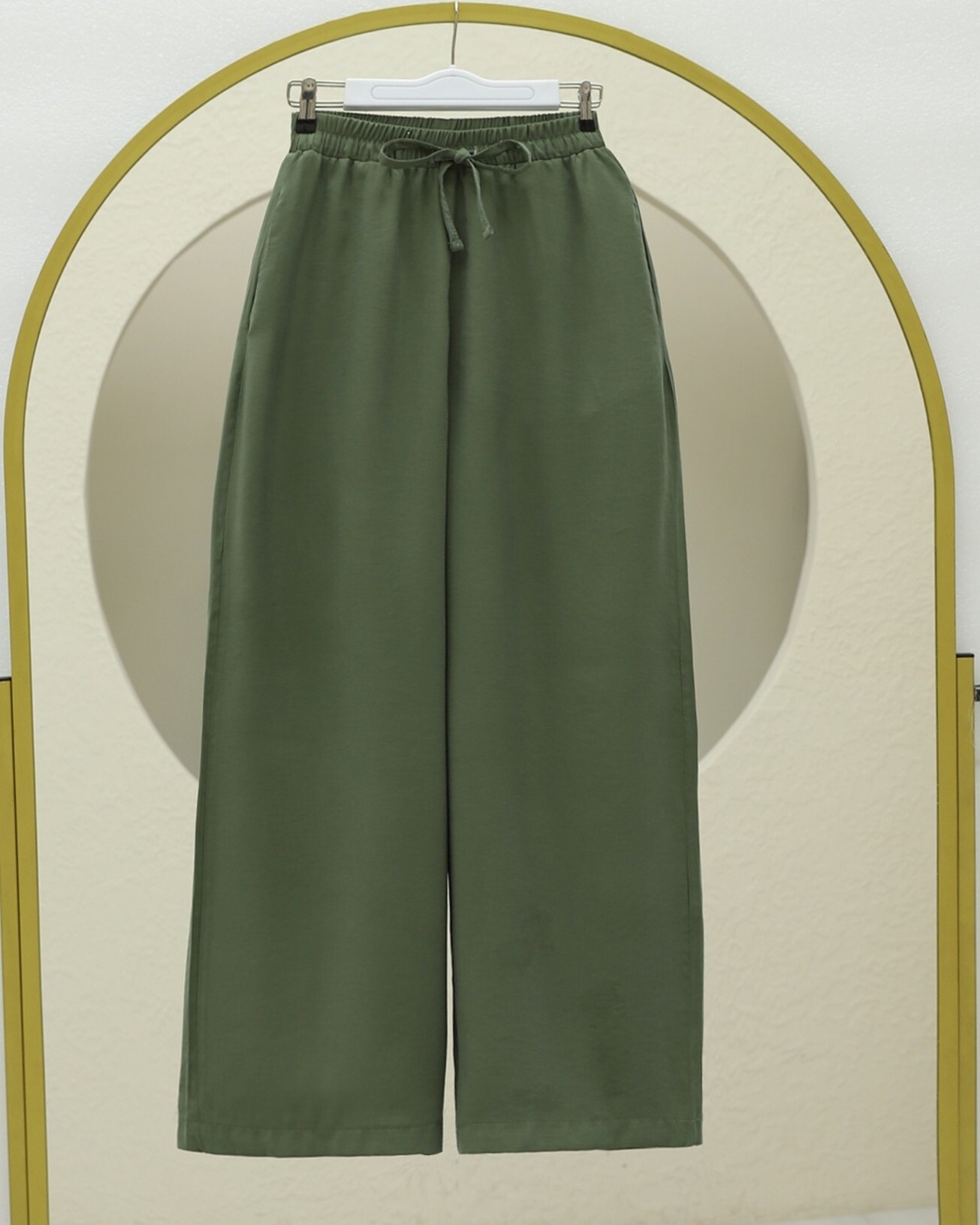 Elastic Waist Laced Wide Leg Modal Fabric Casual Trousers -Khaki