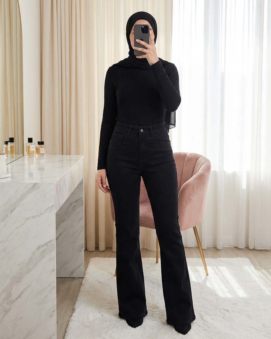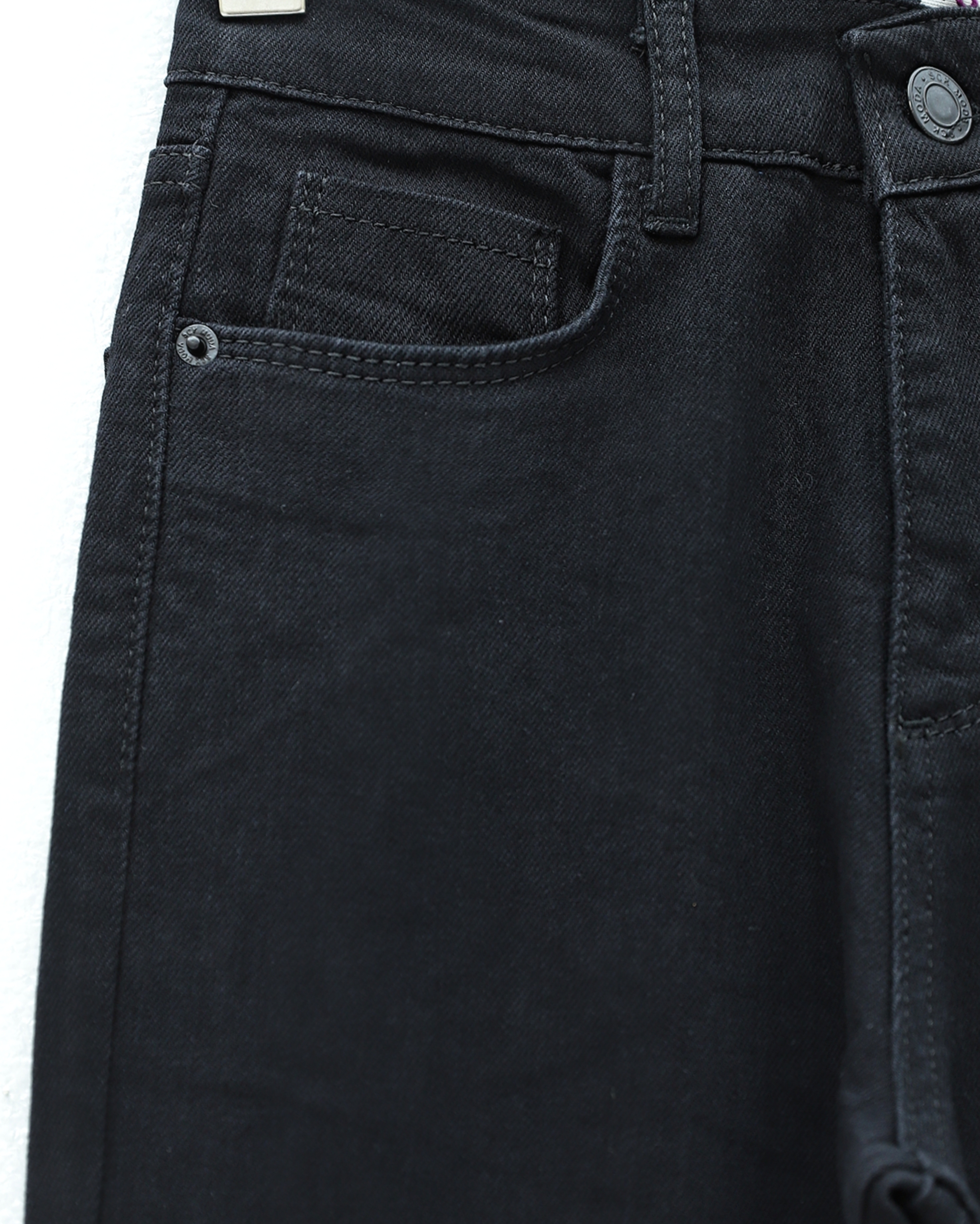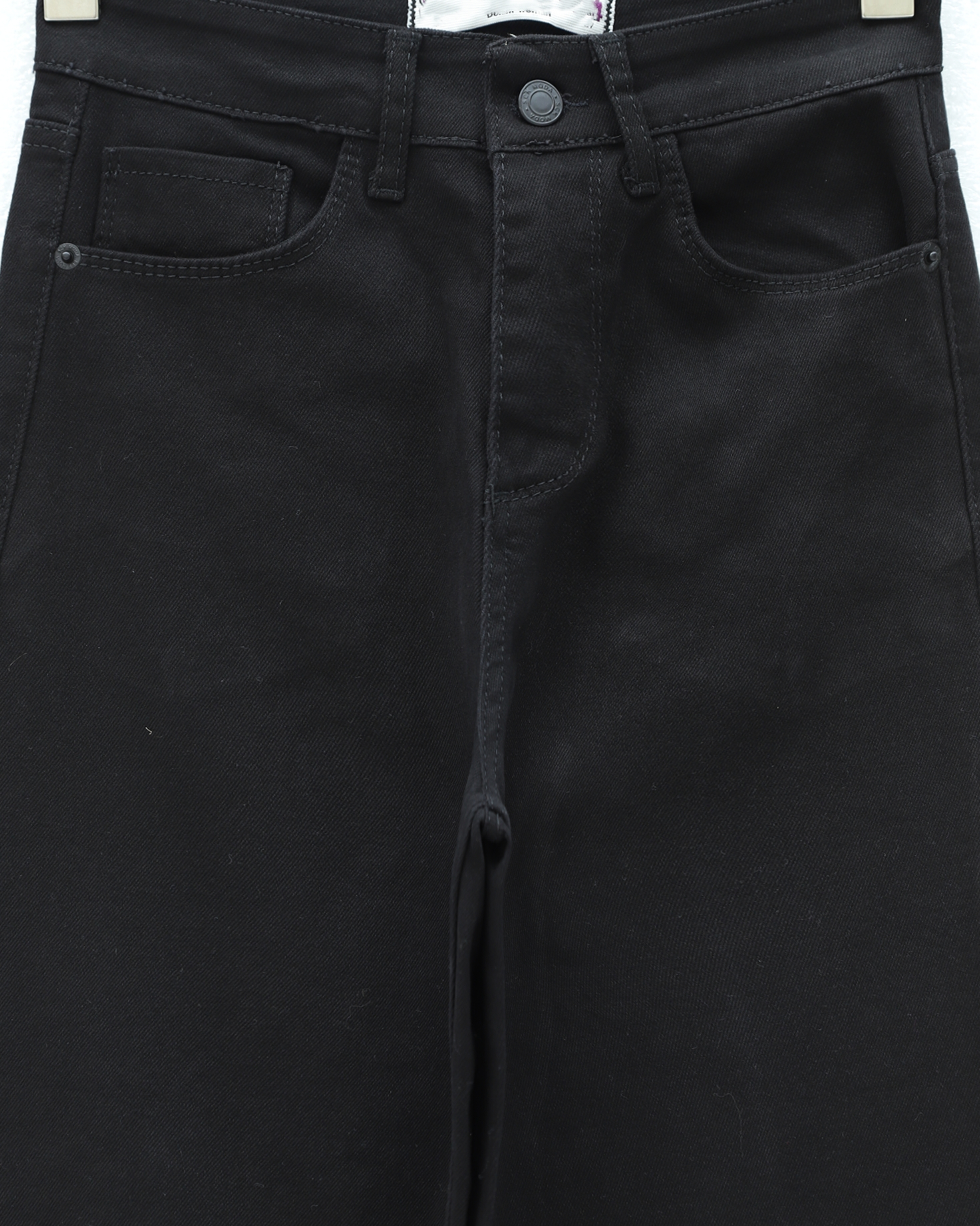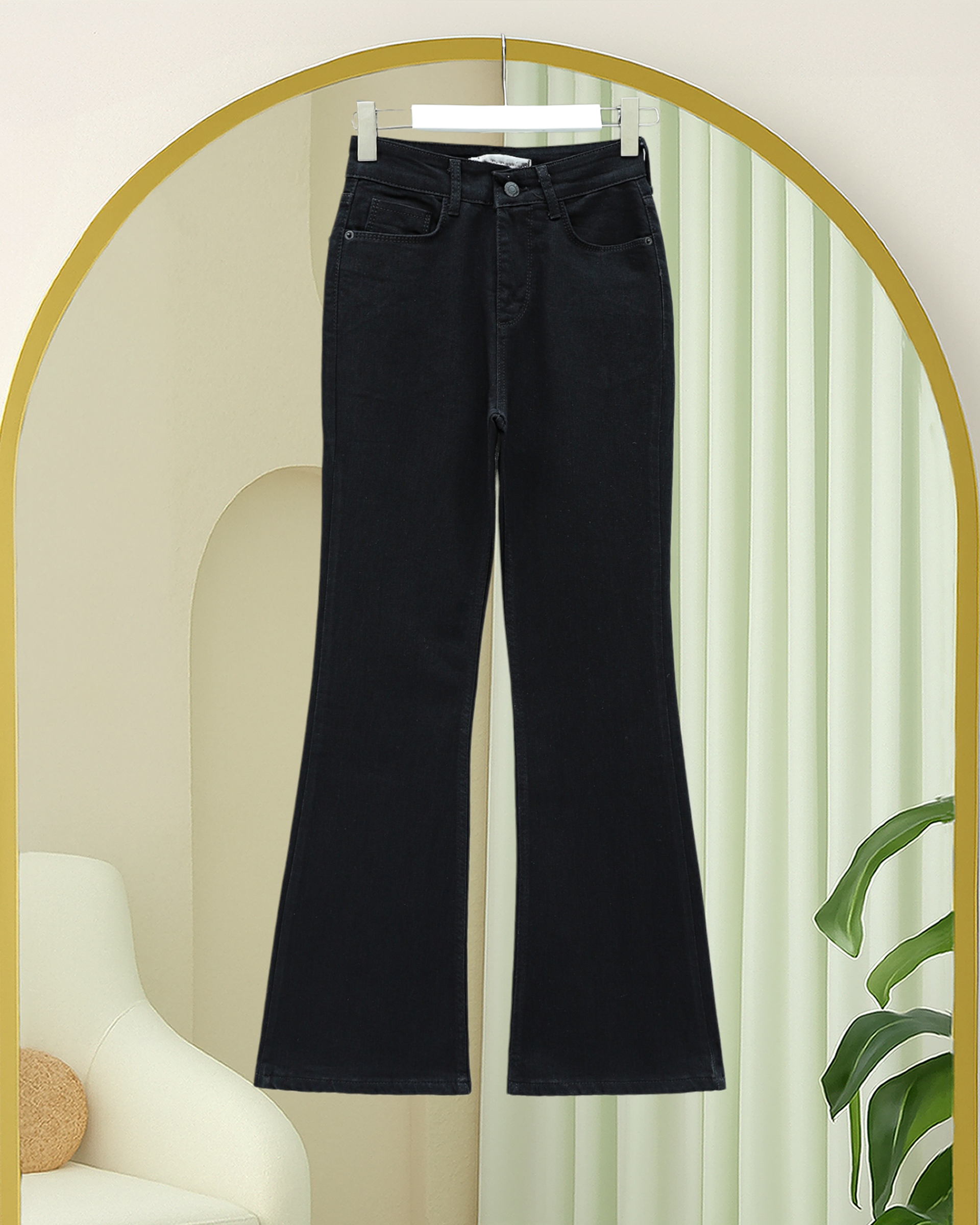 Pocketed, Spanish-style flared, zippered denim jeans -Black