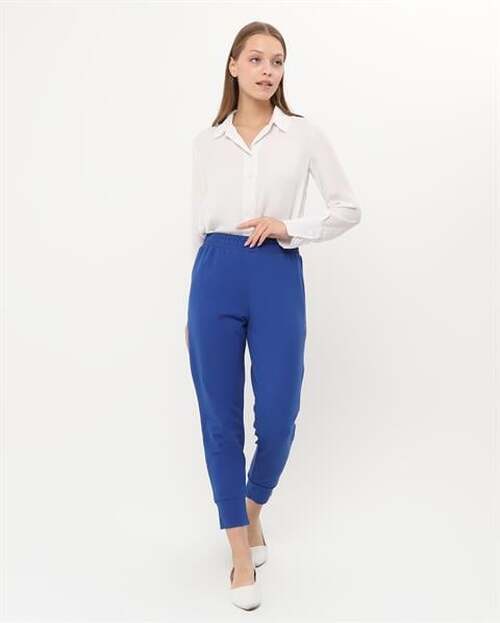 STOCK NAME: - Step Trousers with Cuffed Hem and Elastic Waist
