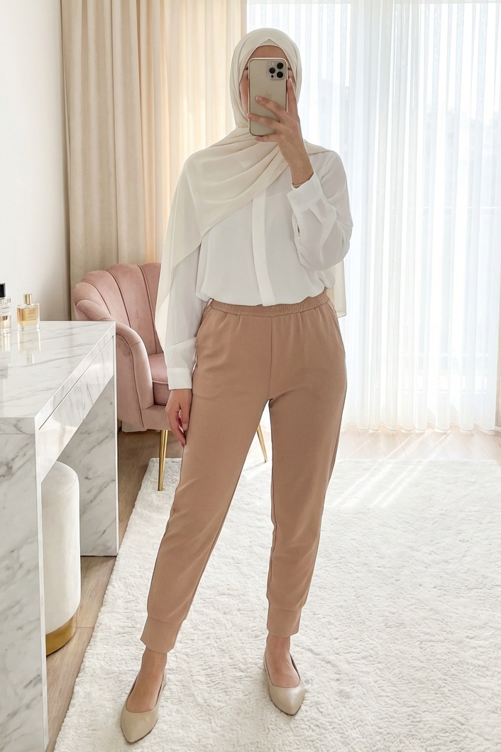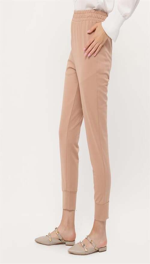 STOCK NAME: - Step Trousers with Cuffed Hem and Elastic Waist