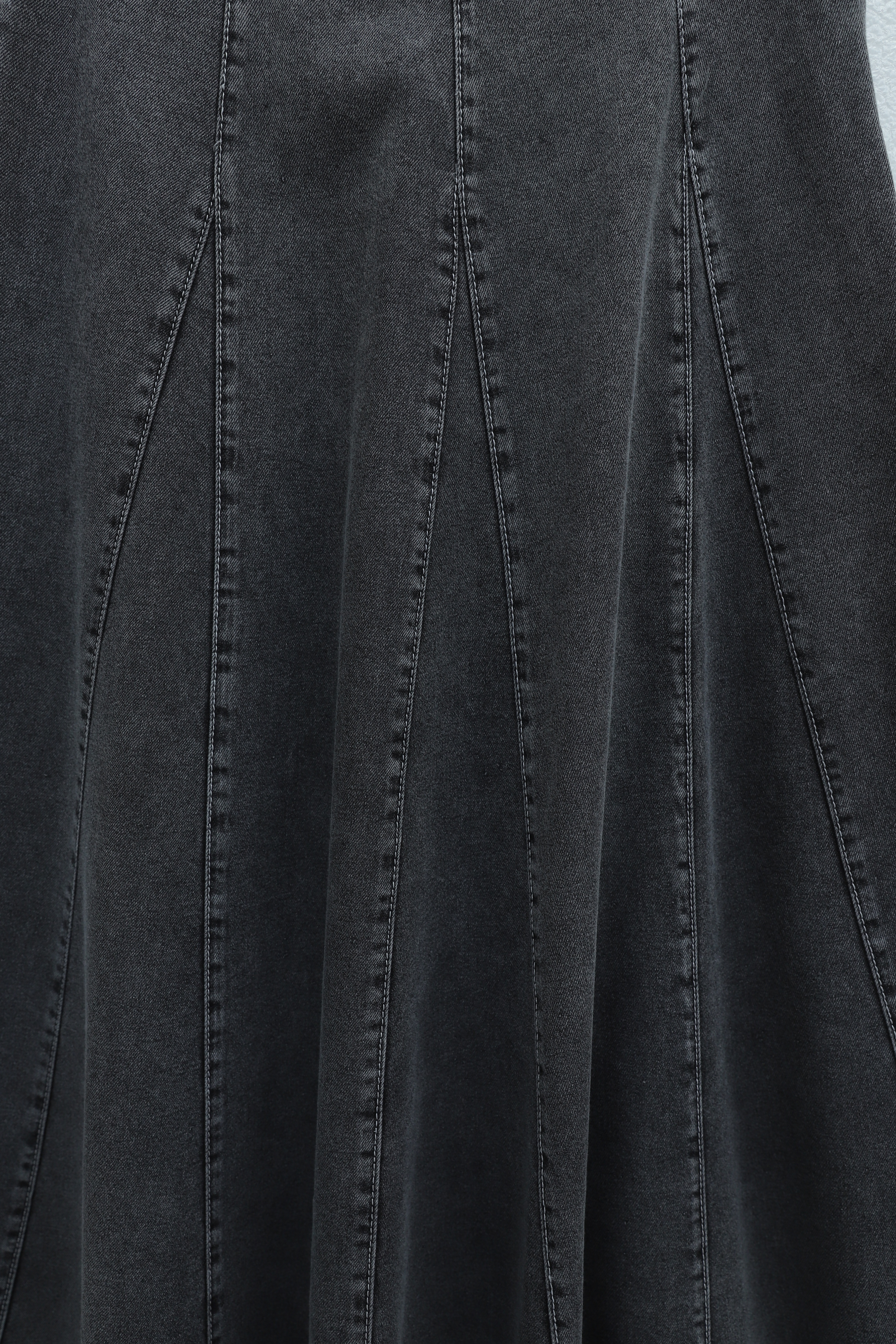 Denim Skirt with Buckle Belt and Zipper -Smoked