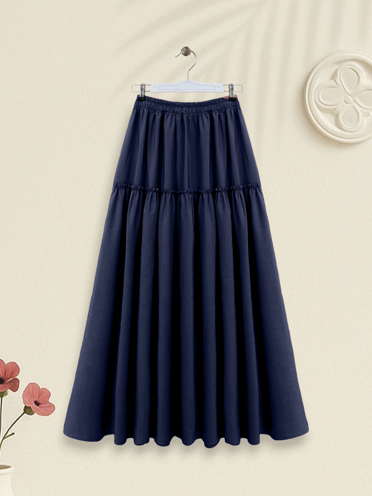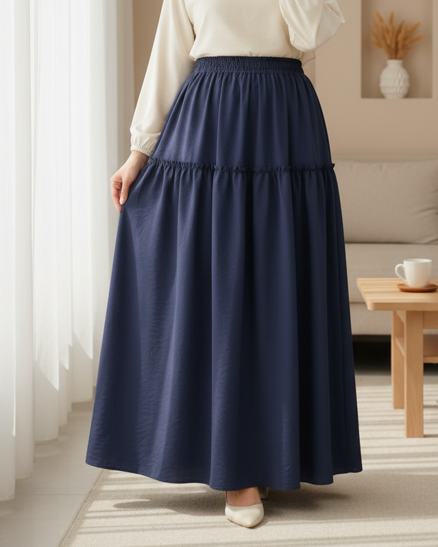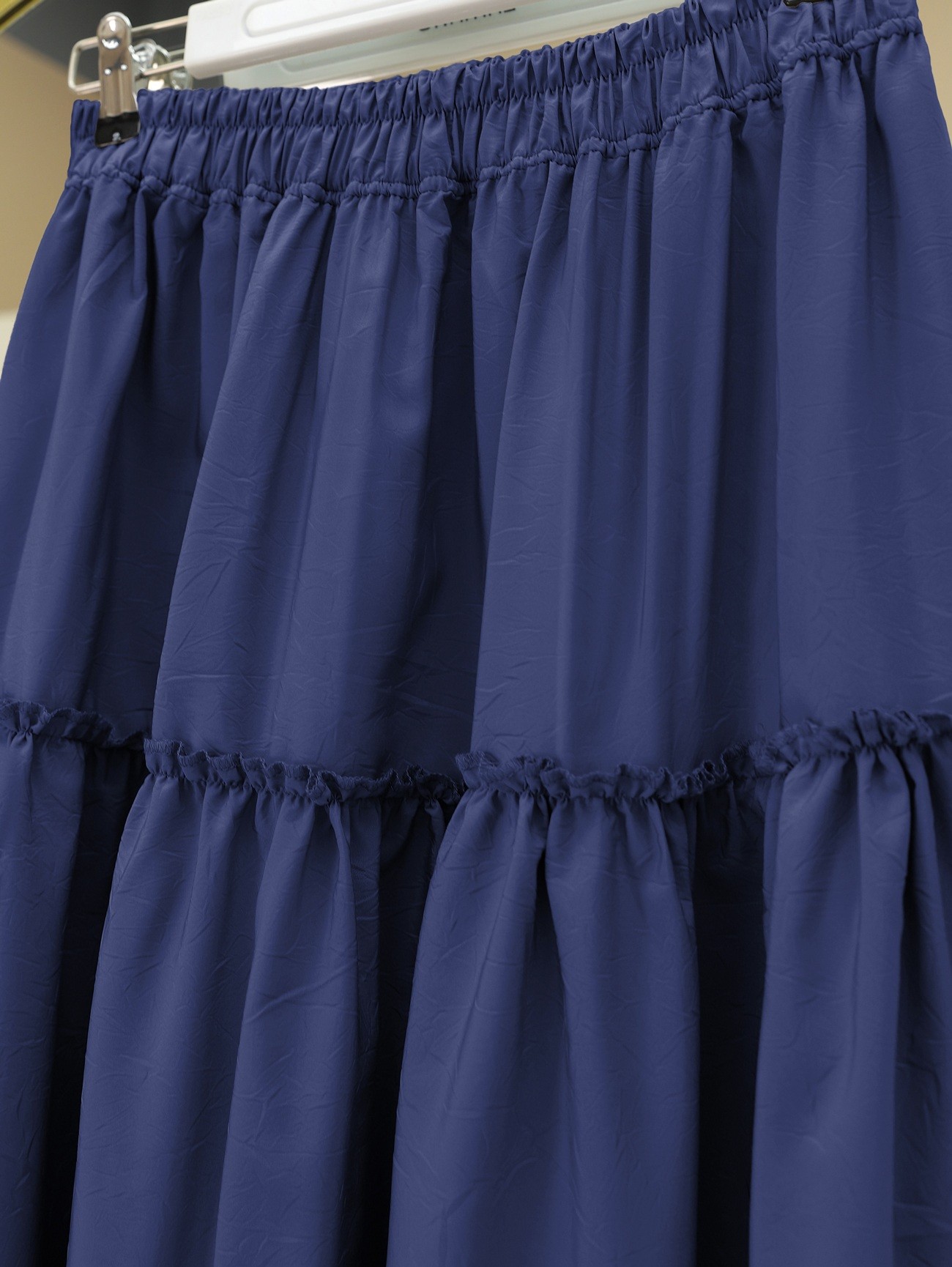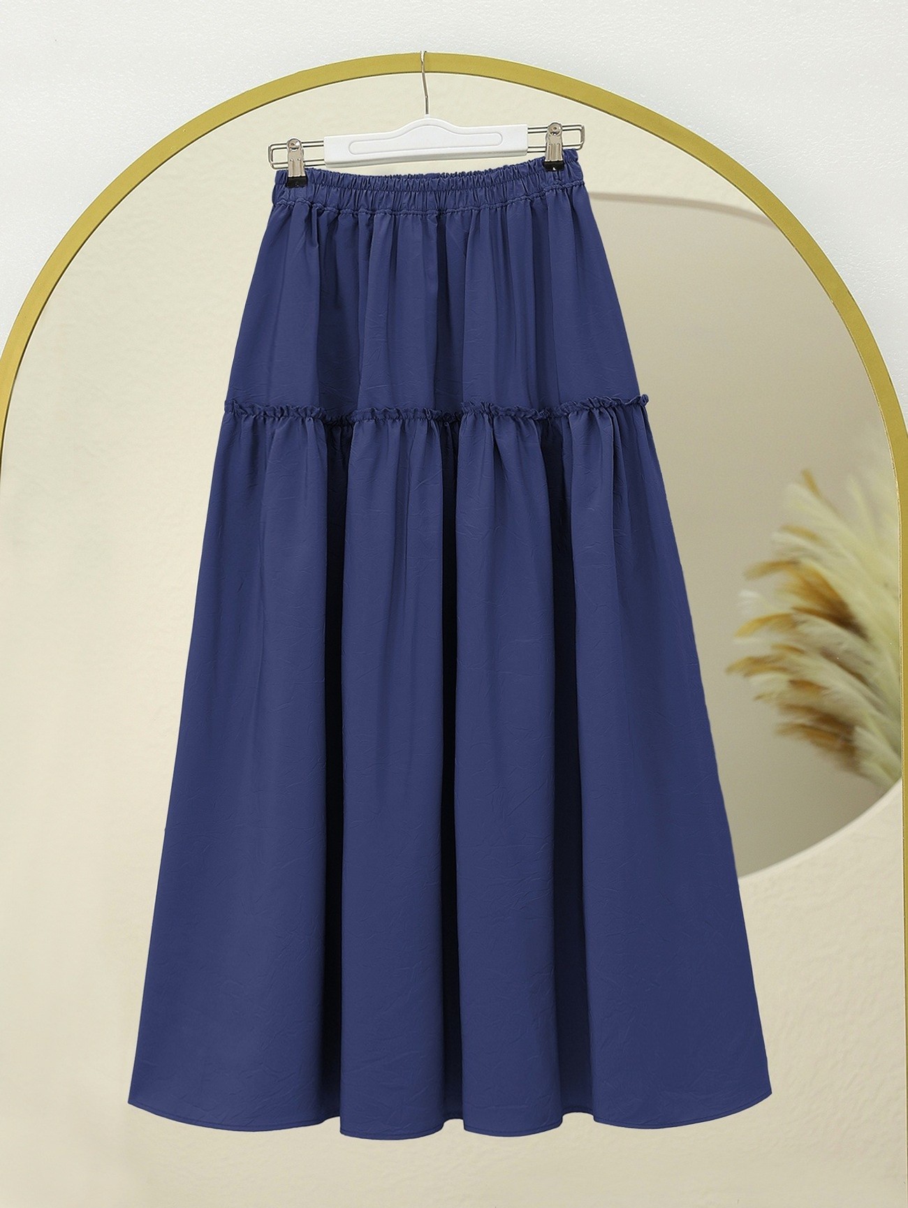 Elastic Waist Krash Pattern Parachute Skirt -Navy blue