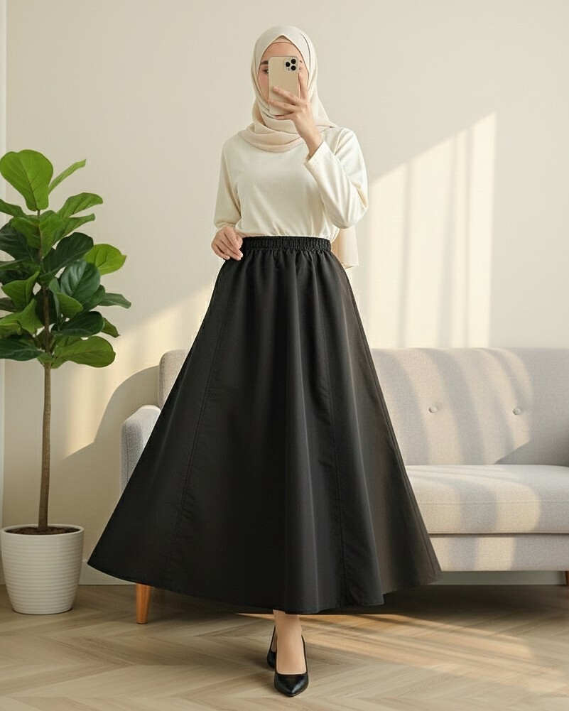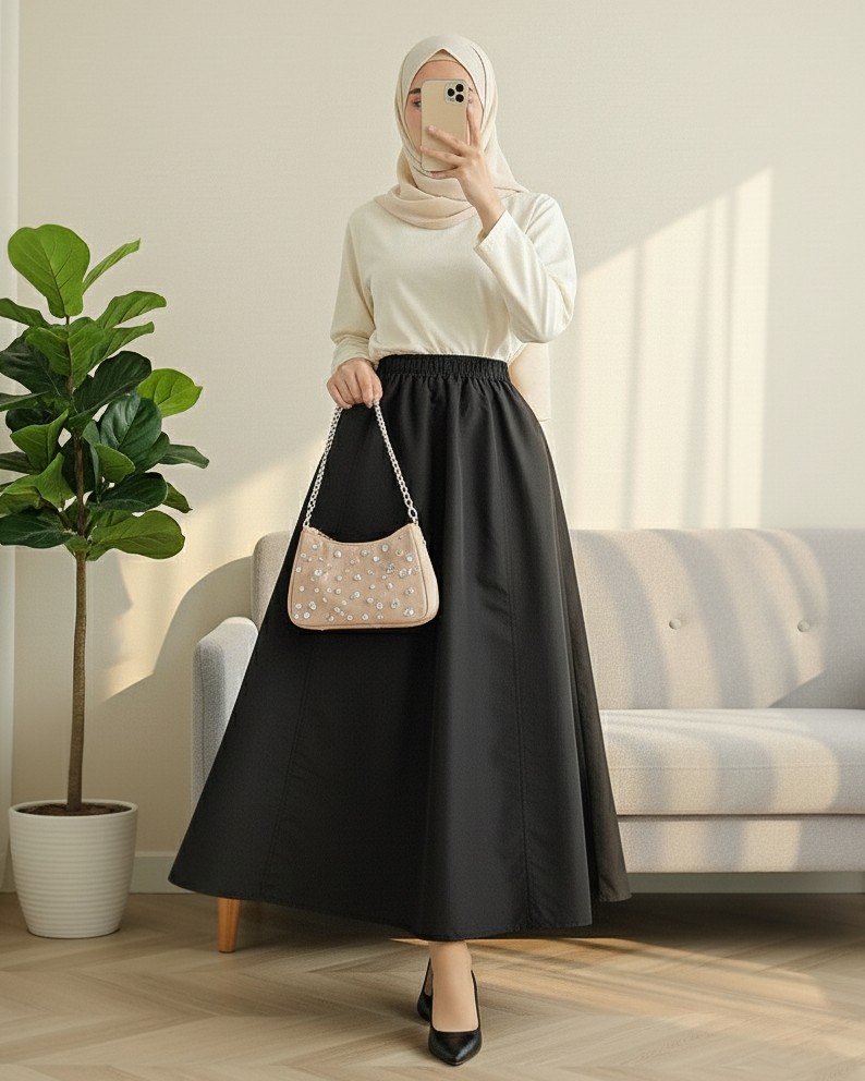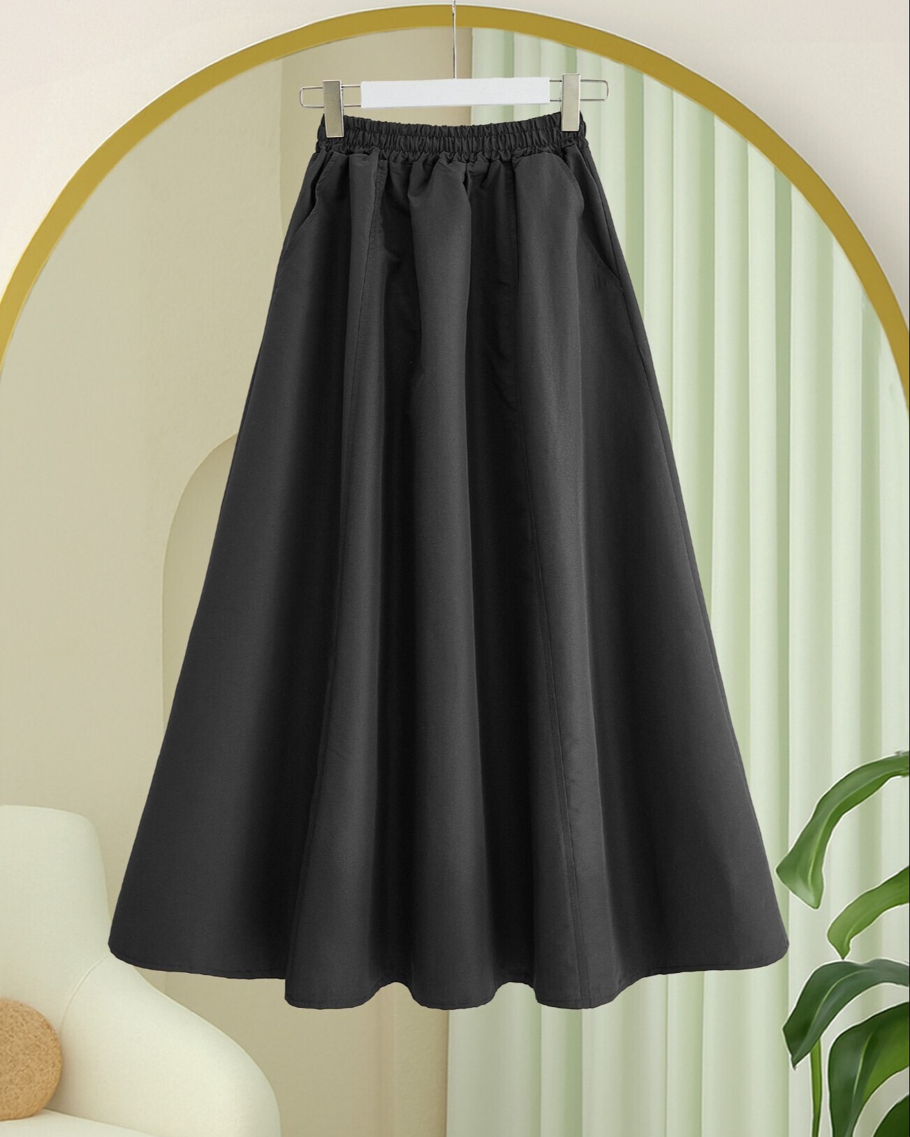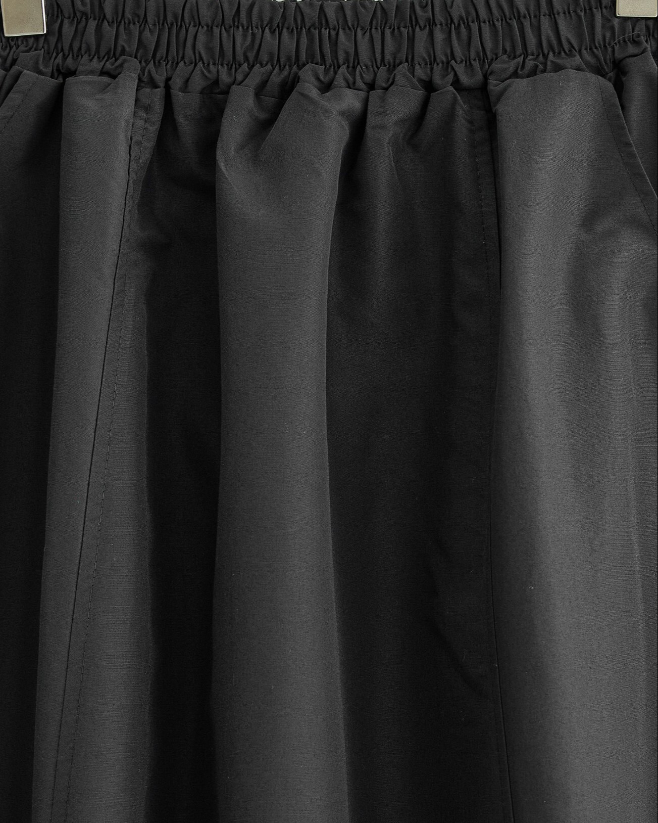Elastic Waist Parachute Skirt with Pockets -Black -