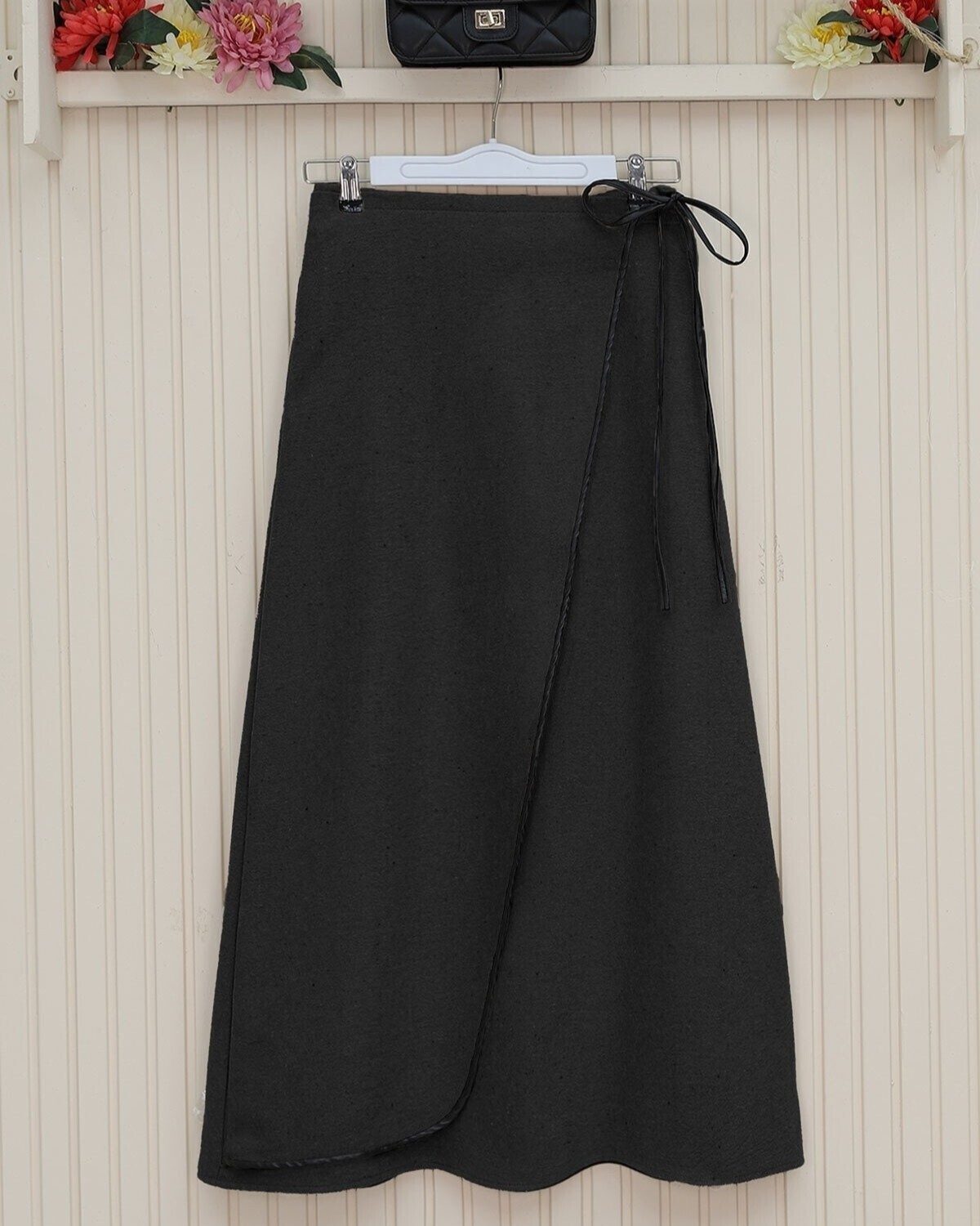 The elastic-waist fine-binded wool skirt perfectly combines style and comfort. The elastic waistband provides a great fit and extra comfort. The fine binding details add a modern and elegant touch to the design. Made from high-quality wool fabric, it keeps you warm while offering a chic look. Perfect for both casual outfits and special events, this skirt will become an essential piece in your wardrobe.