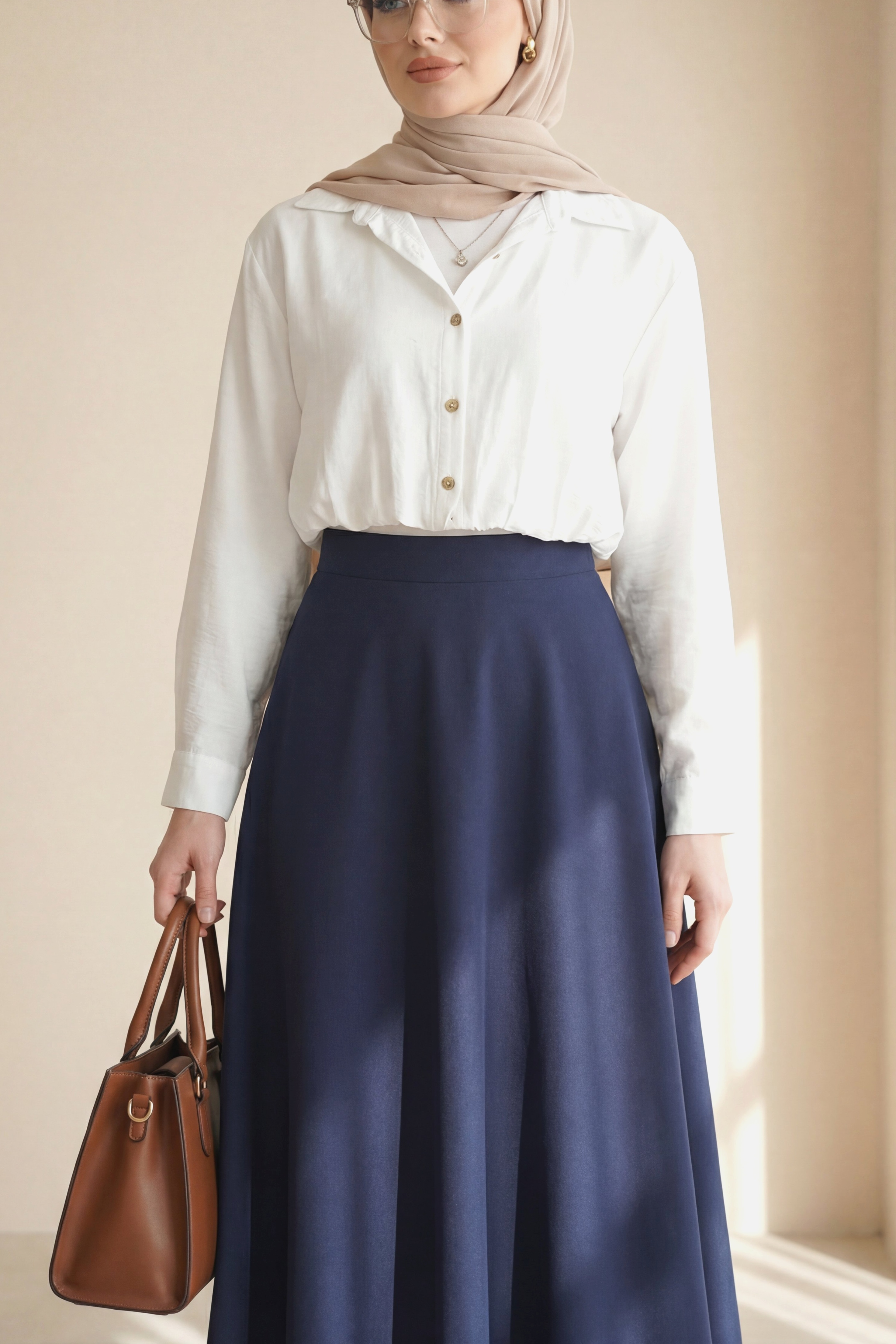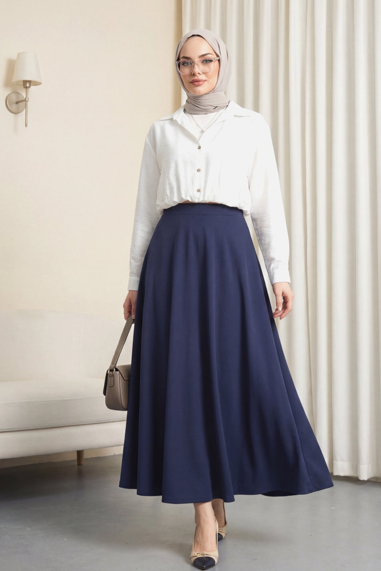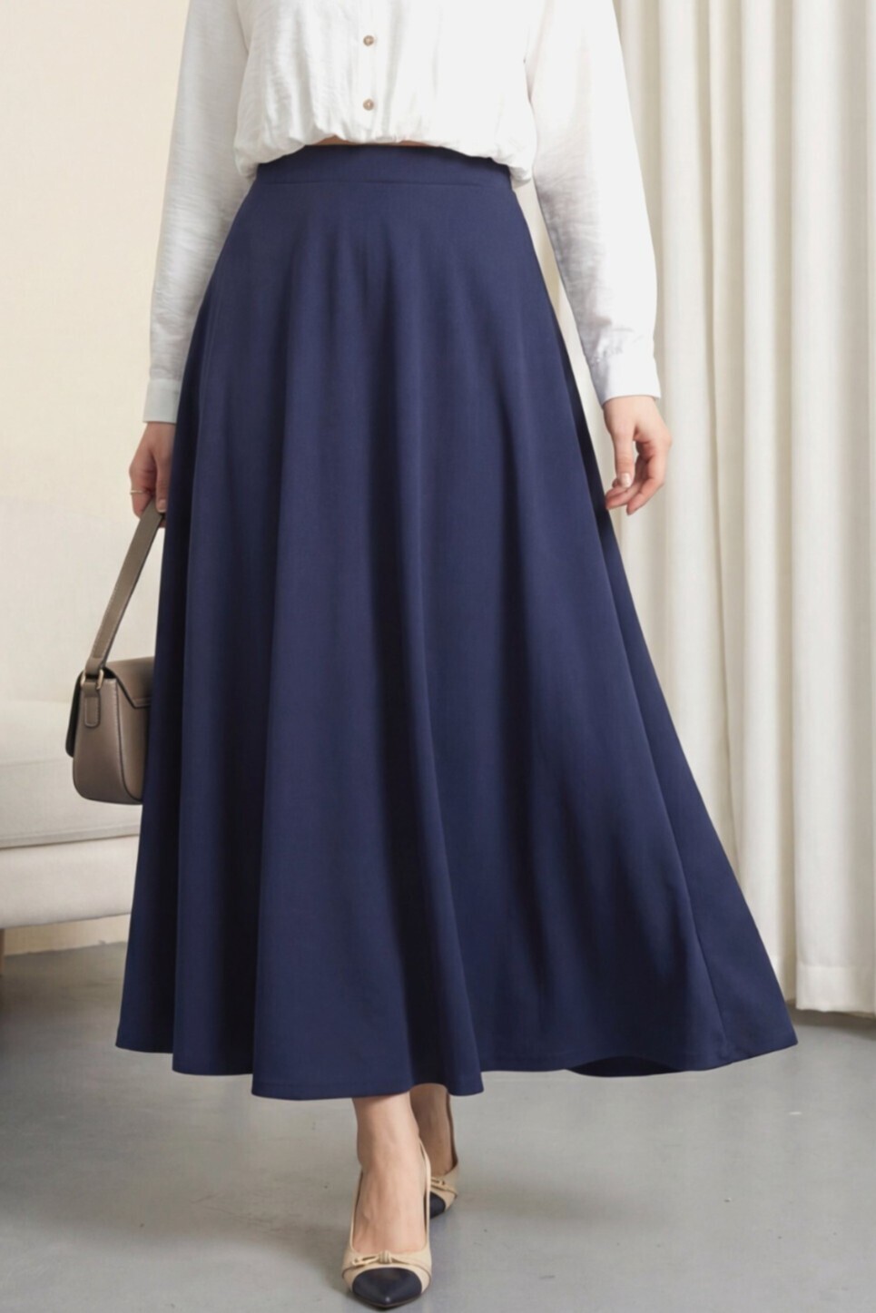 Elasticated Waist Imported Lycra Crepe Flared Skirt -Navy blue