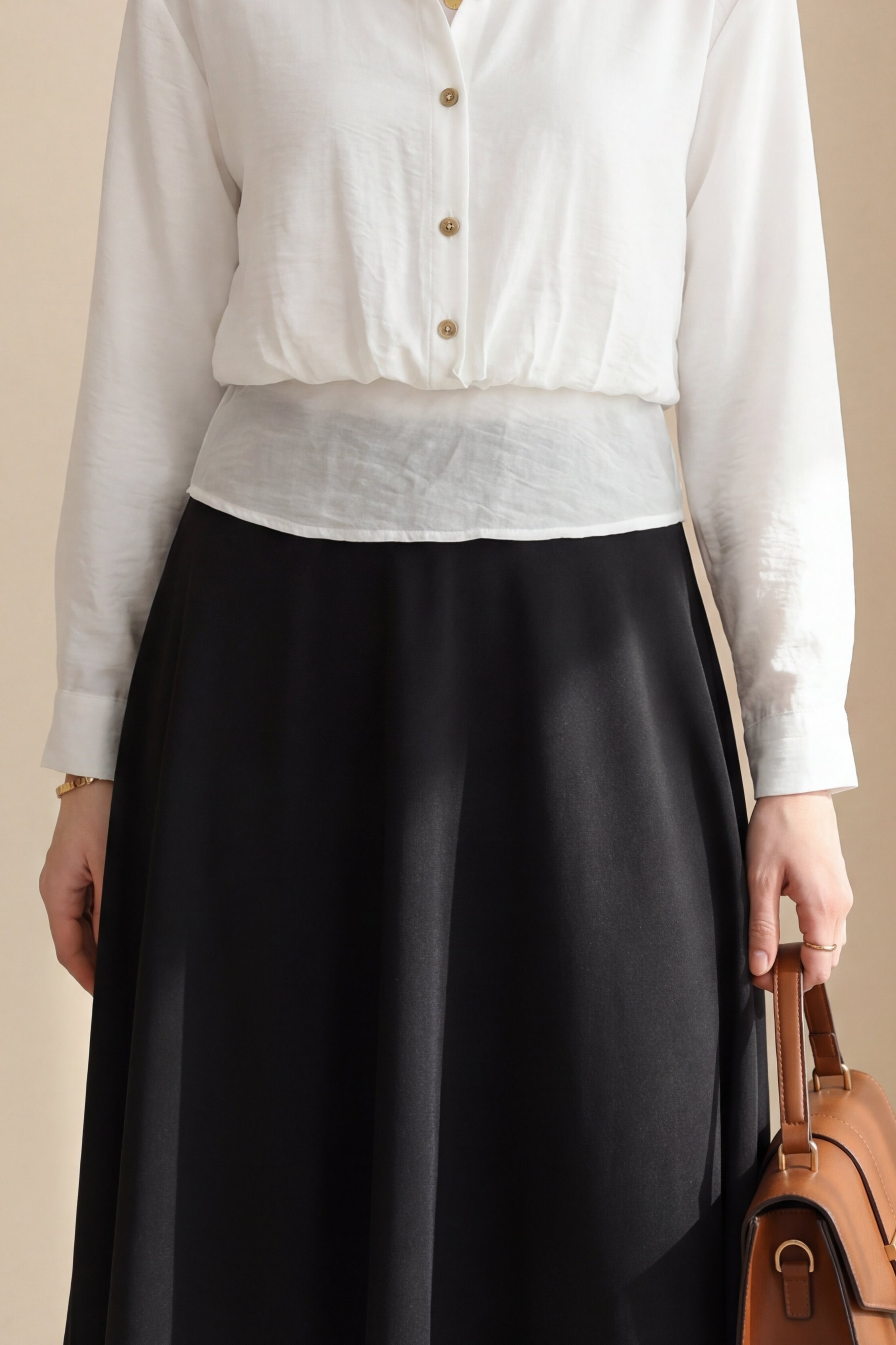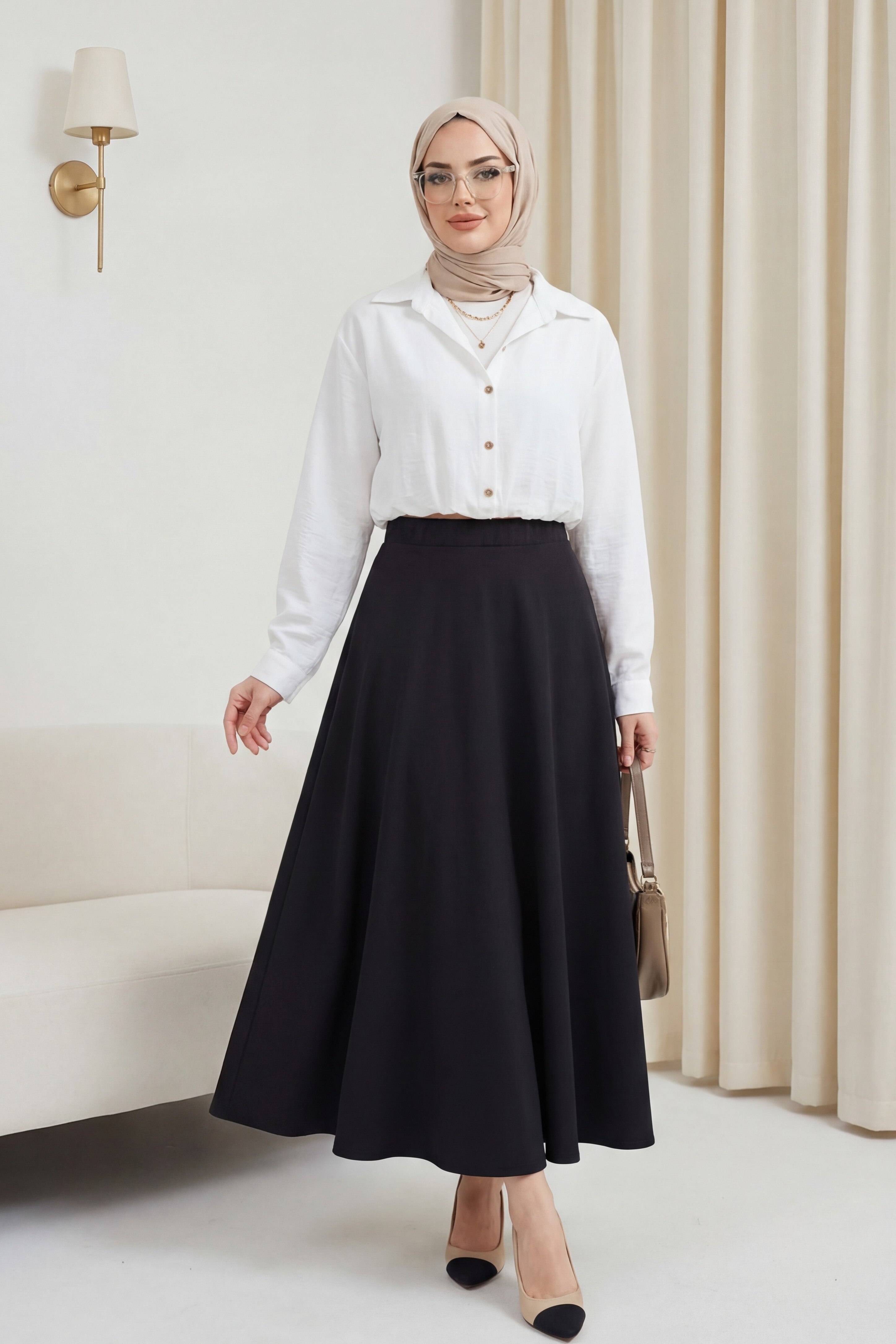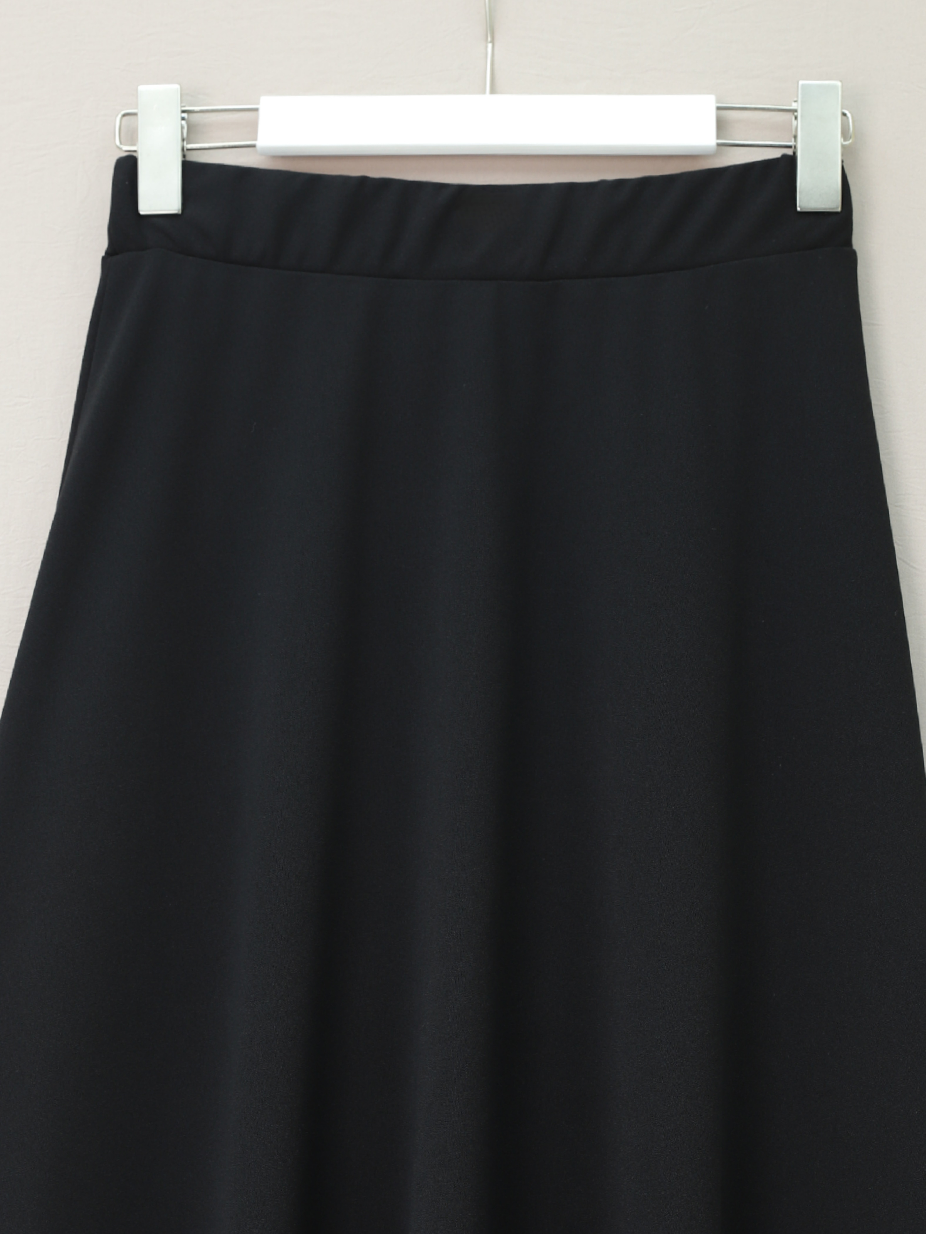 Elasticated Waist Imported Lycra Crepe Flared Skirt -Black
