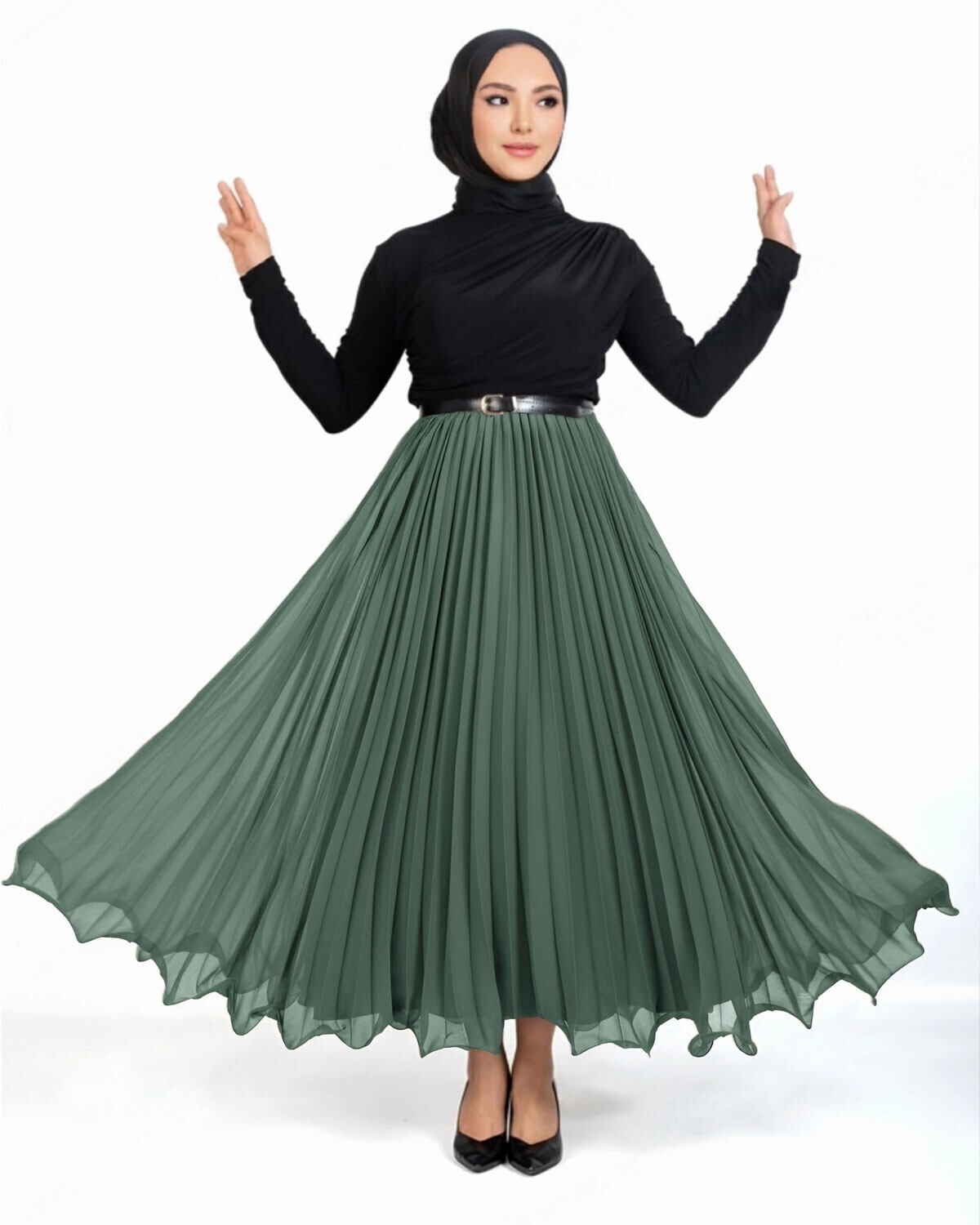Flounce Elastic Waist Chiffon Pleated Skirt -Mint Color